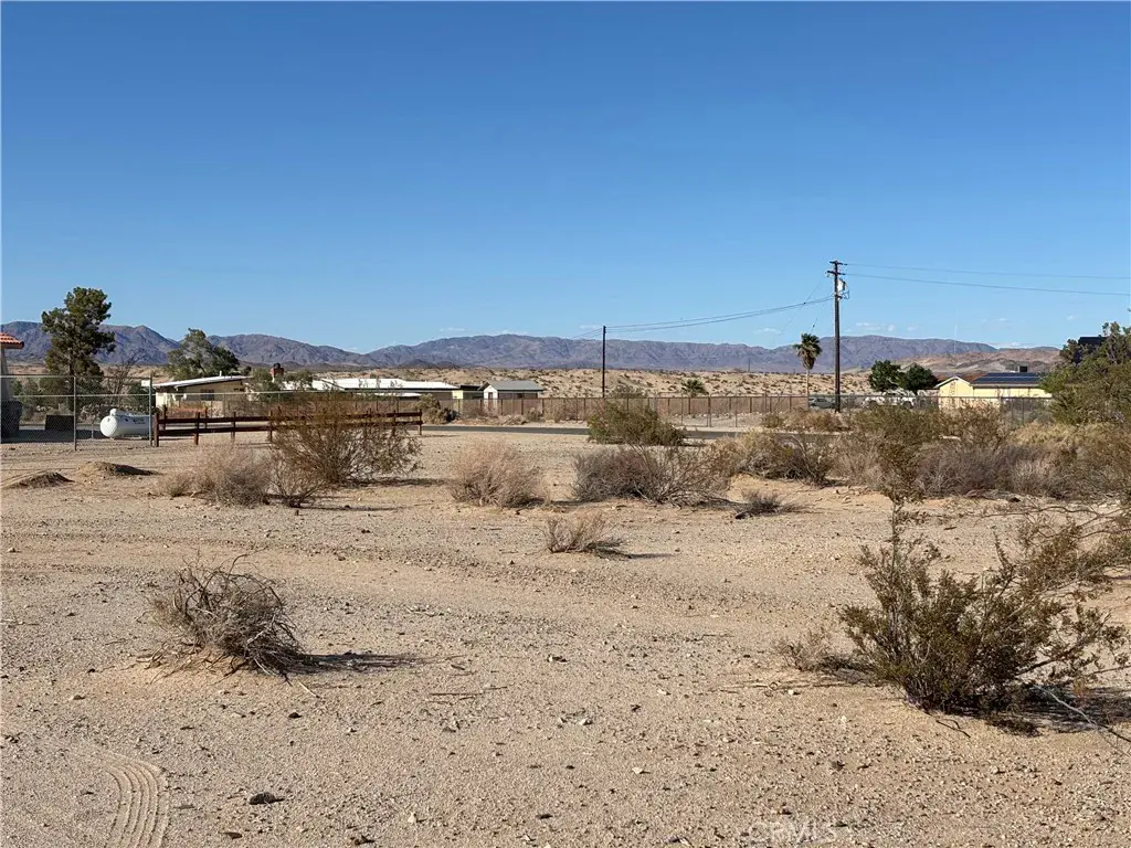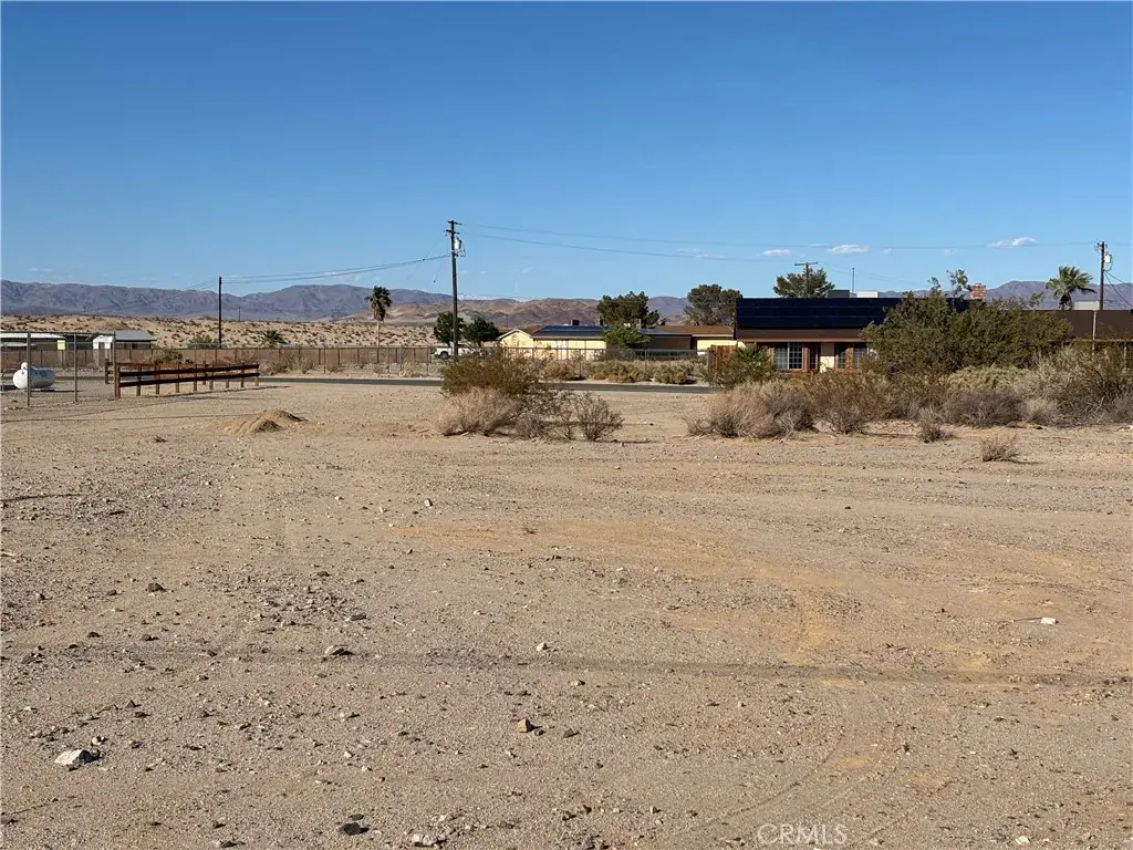 Large almost half an acre lot set in a residential nook in the Cambell Hill neighborhood of 29 Palms. This lot might be perfect for your dream build in a rural location that still is close to all of the city of 29 Palms and the high desert have to offer. The lot is .46 acres, flat and clean, level with the street and has power lines at the back and city water available to it. Off the front of the property there are expansive views to the northeast. 29 Palms is growing and improving year after year with a new city center called Freedom Plaza which hosts a weekly farmers and art market, special events and is being surrounded by new and existing great restaurants and chic boutique shops. This location is only a ten minute drive to the entrance to Joshua Tree National Park. Also 10 minutes to the MCAGCC 29 Palms marine base. Just 5 minutes to Luckie Park which has a skate park, community swimming pool as well as plenty of fields and sporting courts. Come make this great parcel your investment in the high desert. Address is fictitious and for marketing purposes only.