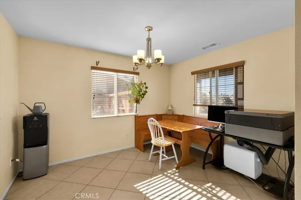 Welcome to Turtlerock! This single-story home offers 3 bedrooms, 2 bathrooms, and a bonus office space with beautiful built ins that can be used as a fourth bedroom. Situated on a corner lot, this gives you a huge backyard space, big enough for a pool, park your RV and even covered patio space for outdoor entertaining! There’s a cozy fireplace and more built in shelves in the large living room off the kitchen which gives the space a feeling of the open flow concept. There’s also a separate dining area for entertaining guests. Laundry is located inside your home instead of the garage space, and speaking of garages, there is an oversized attached 2 car garage, accessible from inside the home. All bedrooms are spacious and the primary has its own en-suite bath with soaking tub, separate shower, and walk in closet! Located in the Turtlerock development of Twentynine Palms, it has a very low HOA that includes a professionally managed septic system, and general maintenance of the common areas including the landscaping of the outer perimeter, it is also well know for their covered front porches and a functional floor plan that gives you plenty of living space. Recent updates include interior paint, partial roof replacement, and an updated A/C duct system. Newer light and plumbing fixtures give it a more updated feel as well. And it’s all located within minutes to the front entrance to the 29 Palms Marine Corp Base, Joshua Tree National Park, and the up and coming downtown 29 Palms area for shopping and restaurants. Whether this will be your first home, or an investment property, it will be hard to pass up this amazing home!