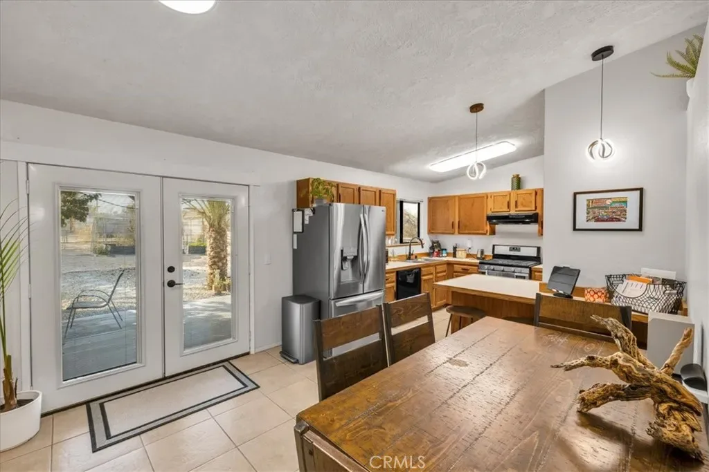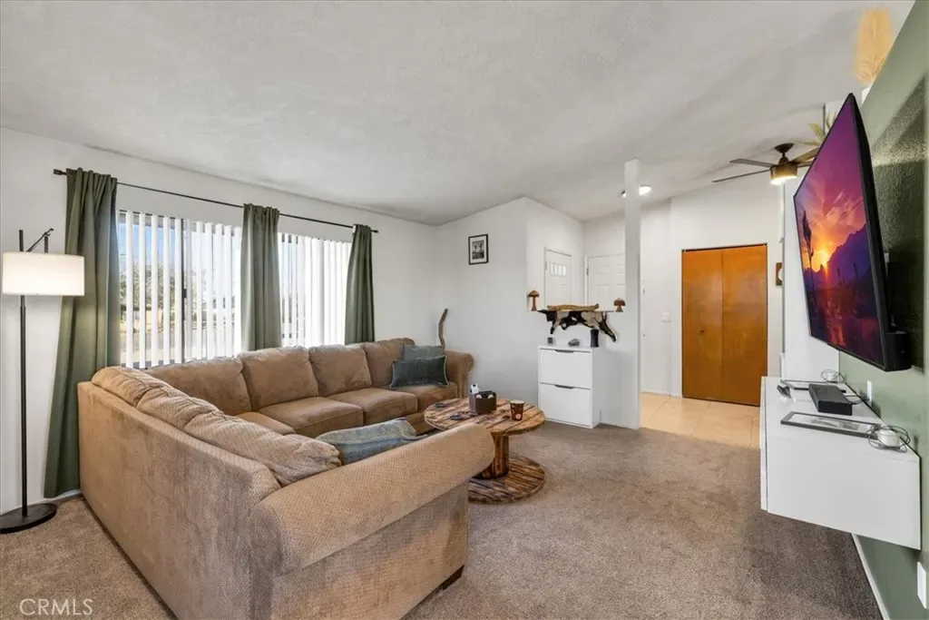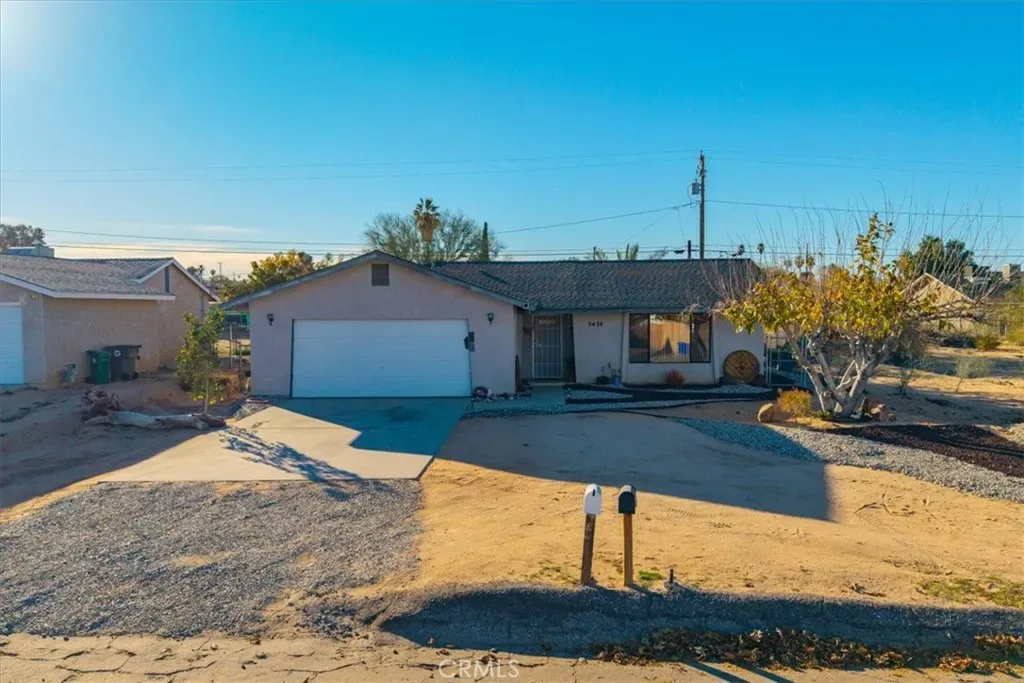 Welcome to 5474 Cahuilla Ave, a lovely 3 bedroom 2 bath home located in the charming Chocolate Drop neighborhood of 29 Palms. This beautifully maintained property features 1,238 square feet of living space with an attached 2 car garage and numerous upgrades throughout. To the right of entry is the spacious living room which boasts high ceilings, a large mini-split, carpeted flooring and several large windows that let in an abundance of natural light. The living room flows effortlessly into the formal dining area and kitchen where you’ll find earth-toned tile flooring, modern fixtures, stainless steel appliances, wood cabinetry with ample storage space and bar seating. All 3 bedrooms adorn painted concrete flooring, individual mini-splits to keep you comfortable year-round, ceiling fans and both bathrooms feature sizable single sink vanities with shower/tub combos. Not to mention, this home has solar! (Buyer to assume SunRun power-purchase agreement) Outside you’ll be delighted to find a lovely covered patio, mature desert plants and landscaping, a fully fenced yard and plenty of space to entertain or relax around a firepit on a starry desert night. With close proximity to downtown, schools, shopping, restaurants, the marine corps base and more, all that’s missing is you! Come take a look & let this home’s charming allure do the rest, your new desert home or weekend retreat awaits!