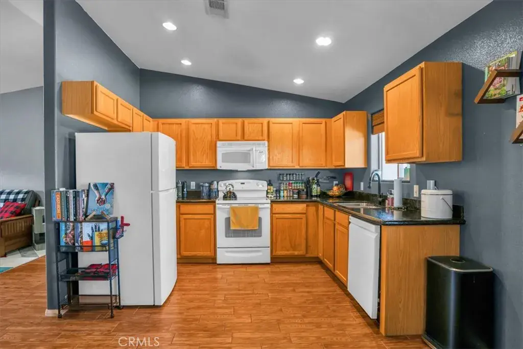 From the moment you arrive, you’re welcomed by a lovely outdoor sitting area at the entrance—perfect for enjoying your morning coffee or relaxing in the evening. The home features vaulted ceilings that create an open, airy feel, and a beautiful Spanish-style roof that adds timeless curb appeal and desert character. Inside, the spacious kitchen offers plenty of room to cook and gather, while the large living room with ceiling fans provides a comfortable space for entertaining or unwinding.
