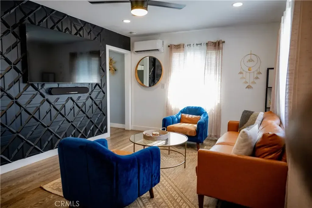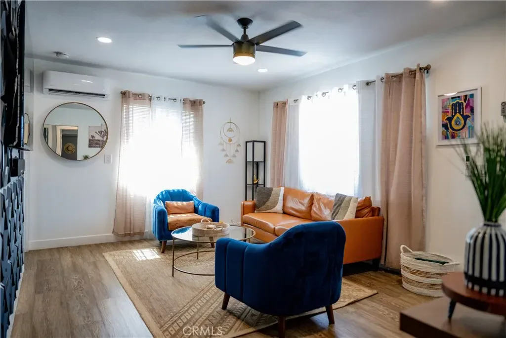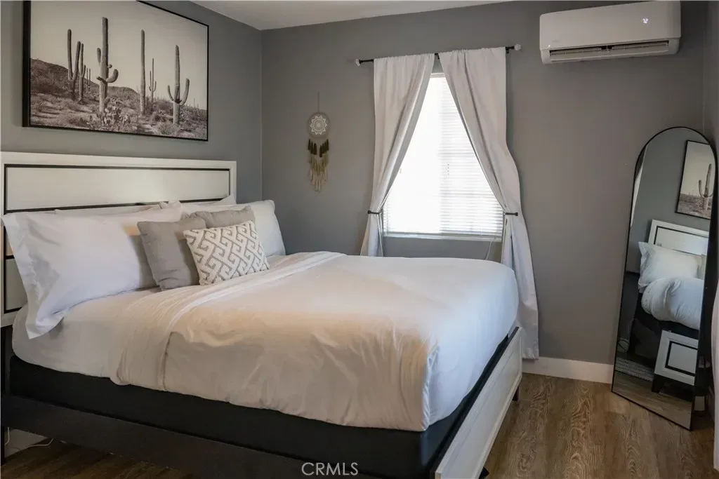 Renovation in 2023 included: new mini splits in both rooms and living room that work perfectly in cooling the house in the summer heat and keeping it warm during the “winter” desert nights, New fans throughout, new flooring, new recessed lighting, bathroom and kitchen all upgraded, new appliances, copper plumbing, new cement slab surrounding the house. 2024: added ambient lighting in the kitchen above and below the cabinets.