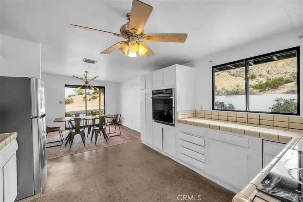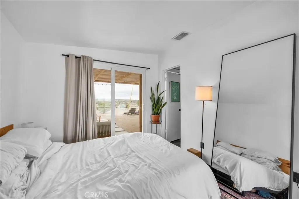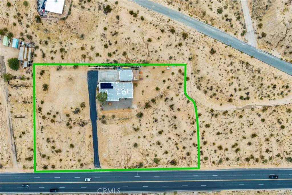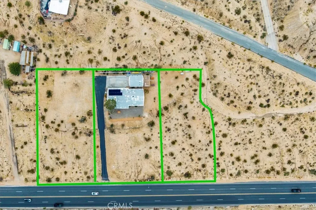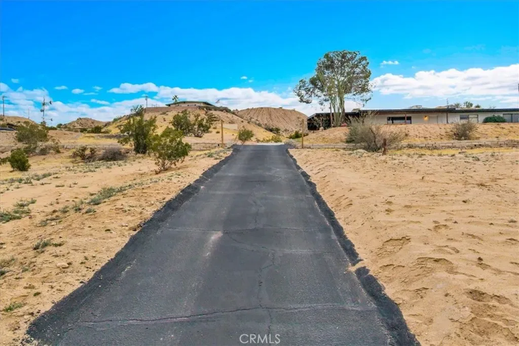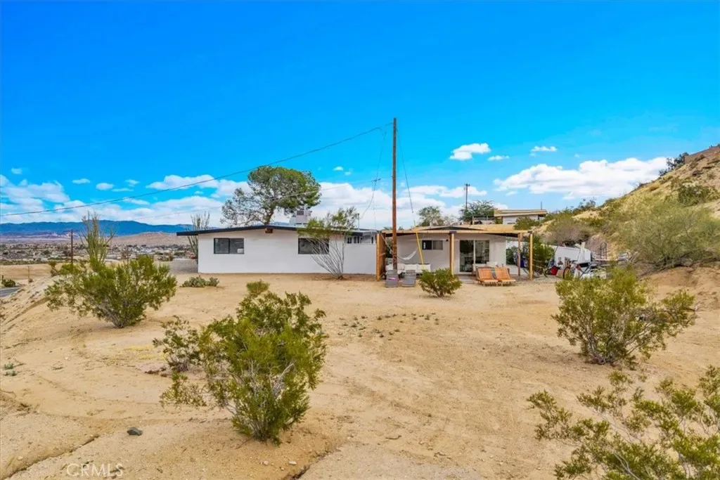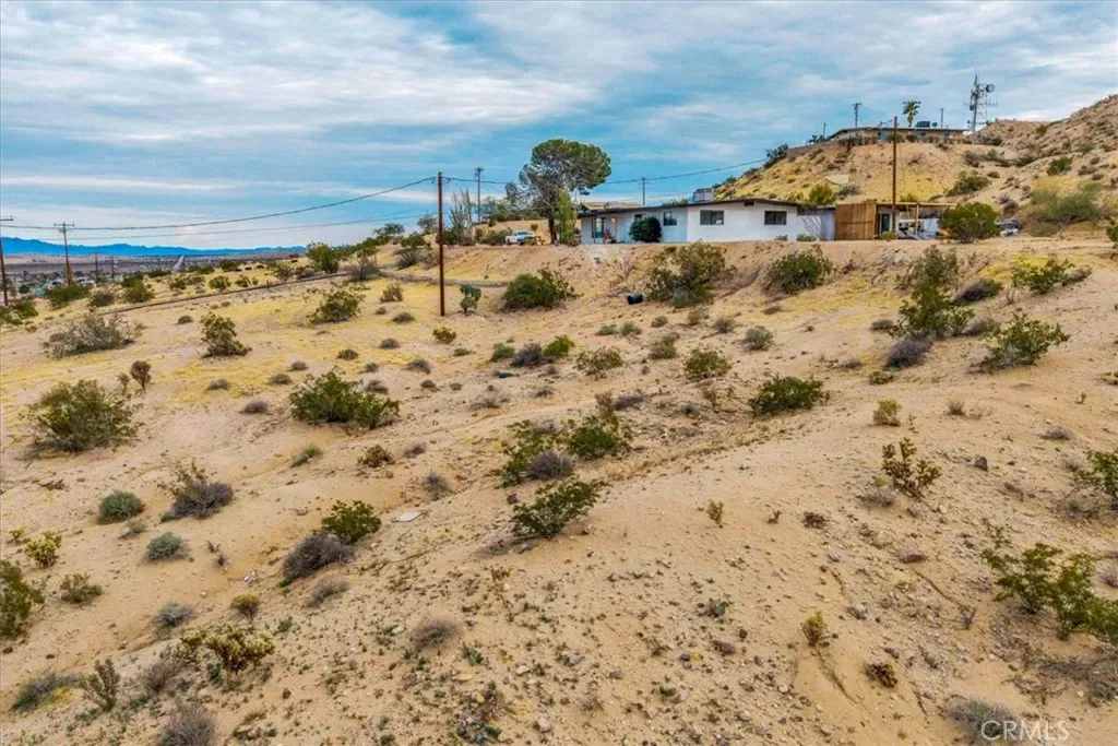 This place has an amazing story and many cool aspects. There is a main house and a back house, included with this sale. (Two adjoining lots sold separately but could be purchased as well-see APN’s below). The main house has 3 bedrooms and 2 bath with brick fireplace, central heat and AC (dated) with additional Evap cooler, separate indoor laundry and mud room exit/entrance, massive windows with views for days, expansive carport and oversized covered patio, mature trees and landscape throughout the property. There is new asphalt leading up to the property and several hundred square feet of concrete outside for more curb appeal and less dirt and sand indoors. Solar panels have been installed and are saving the homeowner money each month and is on a lease, that will need to be transferred or negotiated in the purchase and paid off at closing. The detached 1 bedroom unit has been fully remodeled with a full kitchen, heating, mini split, dining and living space with a separate bedroom that can fit a King bed with a 3/4 bathroom. It’s a wonderful add to an already existing 3/2 house next to it. Very private and tremendous views from almost any window or door. It sits atop a hill that has many unobstructed views of the mountains, valleys, homes, sunsets and sunrises! Truly one of the best properties at this price in 29 Palms! If that was not enough, two additional parcels one on each side of the property can also be purchased. You can build your dream homes or add ADU’s and garages depending on your vision and approval through the City. There is Soooo much potential!!!!! (other two lots – APN: 0617-021-11 located to the right of the property from street view and its 19,600 sq feet. 0617-031-14 on the left side of the driveway pulling in from the HWY and its 23000 sq feet. More info on the parcels in the supplements)