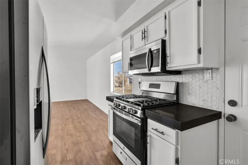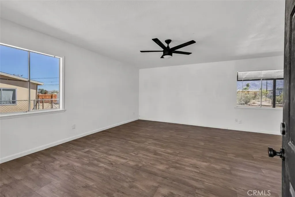 Welcome to this fully updated 2-bedroom, 1-bath home offering a cozy and efficient layout designed for modern desert living. Whether you’re looking for a full-time residence or weekend escape, this one delivers. Step inside to an open and functional floor plan filled with natural light, updated flooring, fresh interior paint, and modern fixtures throughout. The remodeled kitchen features quartz countertops, upgraded cabinetry, stainless steel appliances, and a clean, contemporary design that flows seamlessly into the living area—ideal for both daily living and entertaining. The bathroom has been tastefully renovated with a walk-in shower, custom tile work, updated vanity, and sleek black fixtures for a modern finish. Both bedrooms are well-sized and offer comfortable, efficient use of space. Outside, enjoy the wide-open desert setting with plenty of room to relax, entertain, or create your own outdoor oasis. The property includes a convenient laundry area, ample parking, and space for RV access or future expansion. Located in Twentynine Palms, just minutes from the Marine Corps Air Ground Combat Center, local schools, shopping, and dining. Perfect for the first-time home buyer or long-term rental with the Marine base so close. Low-maintenance desert landscaping and move-in ready condition make this a great opportunity in today’s market.