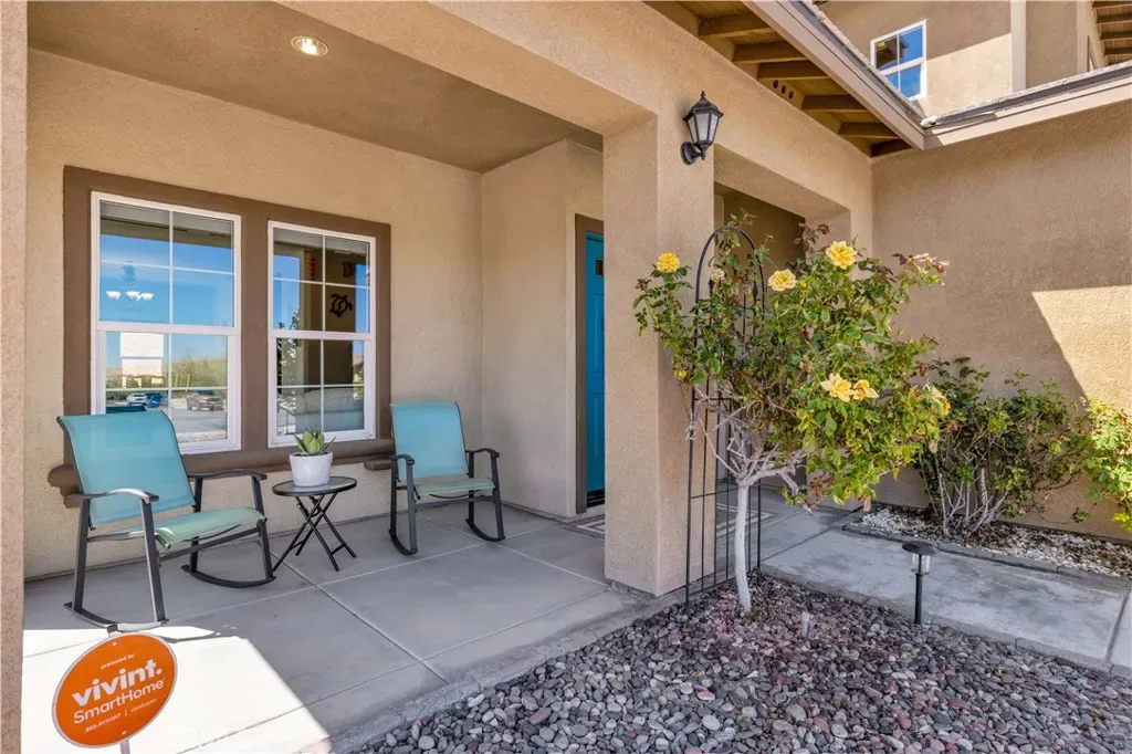 Prepare to Fall in Love! What could be better than a gorgeous, spacious home on the largest lot in the neighborhood? How about FULLY PAID SOLAR—with the seller willing to pay it off at closing with an acceptable offer! As you turn onto Cactus Wren Court, one home immediately stands out. Positioned at the end of a peaceful cul-de-sac, this impressive property sits on a sprawling 0.71-acre lot with a sweeping yard designed for beauty and easy maintenance. The front landscaping features attractive colored rock for water conservation, while blooming roses add a charming touch. Step inside to a dramatic soaring two-story entry, creating a grand first impression for you and your guests. The front living room and adjacent dining area are spacious and filled with natural light from large view windows. The kitchen is thoughtfully designed with beautiful cabinetry, granite countertops, and ample workspace—perfect for gourmet cooking or everyday meals. The oversized island is ideal for breakfast, gatherings, or entertaining. The kitchen opens seamlessly to a separate family room, where a cozy natural gas fireplace creates a warm and inviting atmosphere. Step outside to your private desert retreat. The covered patio features a hot tub for relaxing under the stars. A pathway leads to an above-ground pool and pergola, offering shaded space to unwind and escape the desert heat. This expansive 2,827 sq ft home offers exceptional versatility, including a main-floor bedroom and bathroom with a walk-in shower, ideal for guests or multi-generational living. A separate office with double-door entry provides a perfect work-from-home setup. Upstairs, the grand primary suite is a true sanctuary, complete with a huge walk-in closet, dual sinks with generous counter space, a soaking tub, walk-in shower, and private water closet. Two additional guest bedrooms share a spacious hall bathroom with double sinks and ample storage. A large laundry room with built-in cabinetry is conveniently located upstairs. Additional highlights include a 3-car garage, reverse osmosis water filtration system, and a gas line on the back patio for your dream BBQ setup. For those working at the Naval Hospital at the Marine Base in 29 Palms, this home is within the on-call distance for the hospital! This home truly offers both comfort and convenience in every detail. This is more than a home—it’s a dream worth living! Come experience it for yourself! Schedule a viewing with an Agent today!