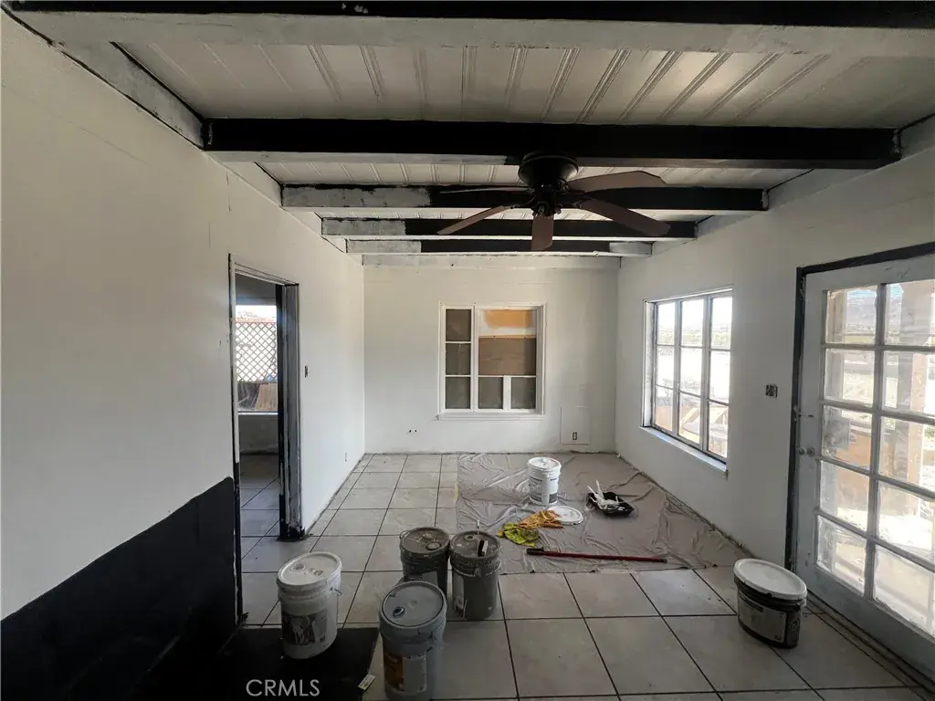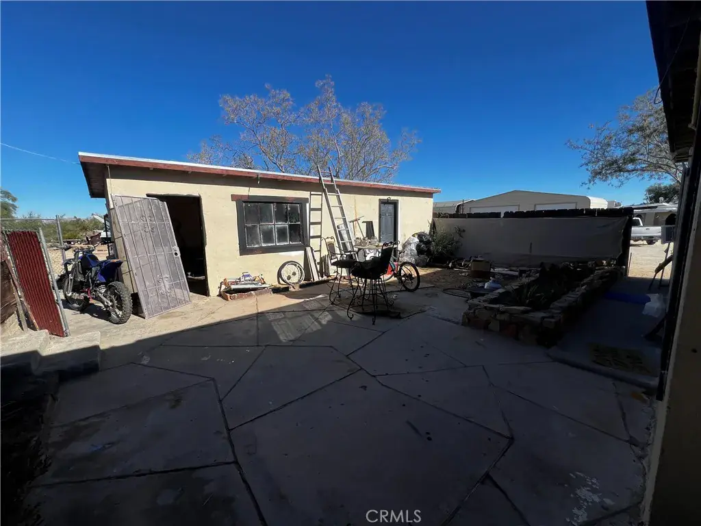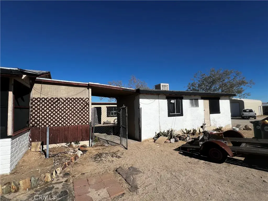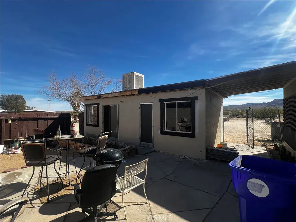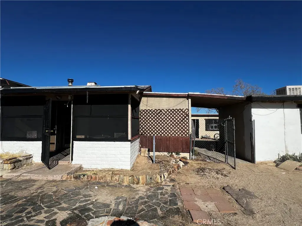 Welcome to 74262 El Paseo Dr. in 29 Palms, California—a rare multi-structure property with tremendous sweat-equity potential. Situated on nearly three-quarters of an acre, this unique compound features three separate structures surrounding a central courtyard. The main residence is a two-bedroom, one-bath block-construction home with impressive open-beam wood ceilings, a spacious floor plan, a generous bathroom, tile flooring throughout most of the home, and an enclosed laundry area plus a screened porch. The second structure, though not reflected in current tax records due to the age of the property, includes two bedrooms, one bath, and a kitchen, offering flexibility for future use. The third structure is an oversized laundry room/workshop, providing valuable additional utility space. While the property will require a full rehab, the roof appears free of obvious leaks and the overall bones feel solid, making this an excellent candidate for transformation. In addition, a separate lot located directly behind the property is available for purchase, and the home next door is also for sale, creating a unique opportunity for buyers seeking to assemble a large multi-property compound.