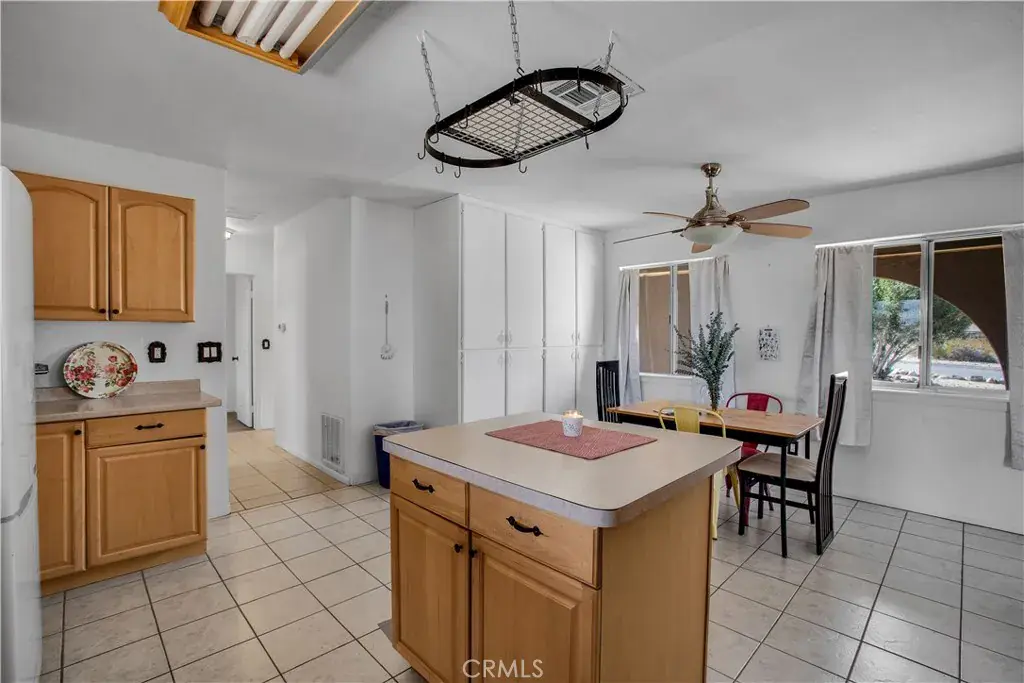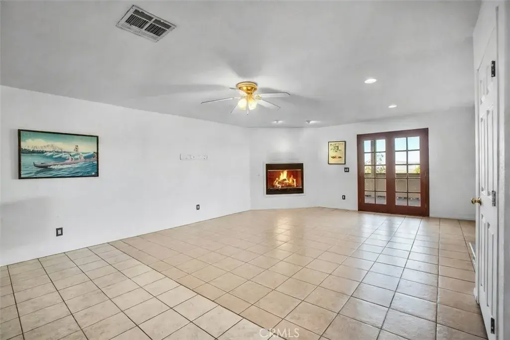 Welcome to 7565 Sherman Hoyt Ave in Twentynine Palms, a stunning two-story home offering incredible 180-degree views stretching from Big Bear and the San Bernardino Mountains to Goat Mountain, Landers, and across the entire Twentynine Palms basin and military base. This spacious property features three bedrooms downstairs plus a private upstairs master suite, totaling four bedrooms and two and a half bathrooms. The expansive living room offers a gas fireplace (currently wood burning), ceiling fan, French doors to the covered patio, and a storage closet tucked neatly under the staircase. The kitchen has been upgraded with granite slab countertops, center island, built-in storage cabinetry, pull-out faucet, dishwasher, gas oven and stove with overhead microwave, and opens to a dedicated dining area. Downstairs includes three bedrooms with mirrored closet doors and ceiling fans (one with light only), a full bathroom, and an additional half bath powder room. Upstairs, the master suite offers vaulted ceilings, two ceiling fans, a cozy fireplace with gas log set, walk-in closet, updated walk-in tile shower, and French doors leading to a wraparound balcony showcasing breathtaking panoramic desert views. The suite also features its own private entrance, creating potential for multigenerational living or possible second unit use. The home is equipped with dual cooling systems including central HVAC plus multiple evaporative coolers, along with paid-off and owned solar for energy efficiency. Additional features include a custom front door, covered front porch with paver walkway, one-car garage with roll-up door and opener, washer and dryer hookups with electric dryer connection, and a pull-through lot design. The backyard is fully enclosed with block wall fencing and offers mature desert landscaping including lemon tree, pomegranate, desert willow, rosemary, bougainvillea, fan palms, desert sage, multiple cacti, and decorative local quarried rock accents. There are three sheds on the property with no known leaks; one shed has electricity and could serve as an art studio, workshop, or tool shed. A covered patio off the living room creates additional outdoor living space. The vacant lot next door may also be available for purchase, offering the opportunity to expand your footprint. Buyer to verify all information including square footage, lot lines, zoning, and potential uses.