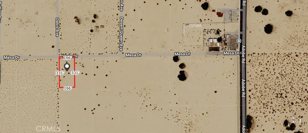Spacious 1.25 acre parcel on Mesa Dr in 29 Palms offering beautiful desert views and plenty of room to build your future desert retreat or investment. Power is nearby at the neighboring parcel. County records do not currently show water service for the property; however, a fire hydrant was observed near the parcel, which may indicate a nearby water line. Buyers are encouraged to verify utility availability with the Twentynine Palms Water District and the City of Twentynine Palms planning department. The property sits on a sandy road just off paved Adobe Rd, providing convenient access into town. Enjoy the peaceful desert setting while being a short drive from local shops, restaurants, and the natural beauty of Joshua Tree National Park. Drive by and invest today! APN: 0620-101-24-0000. Latitude:34.178774, Longitude:-116.060516.