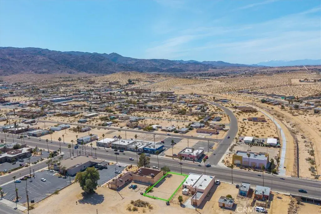 Vacant lot located on Adobe Road in the heart of 29 Palms. This property offers strong visibility in a high-traffic area near existing businesses, shops, and services. Zoned Downtown General (DG) per the City of 29 Palms zoning map (Land Use Table In Supplements). Conveniently situated just minutes from the Marine Corps Base and a short drive to Joshua Tree National Park. Buyer to verify all zoning, permitted uses, utilities, and development potential with the City of 29 Palms. A great opportunity to secure a centrally located parcel in a growing desert community.
