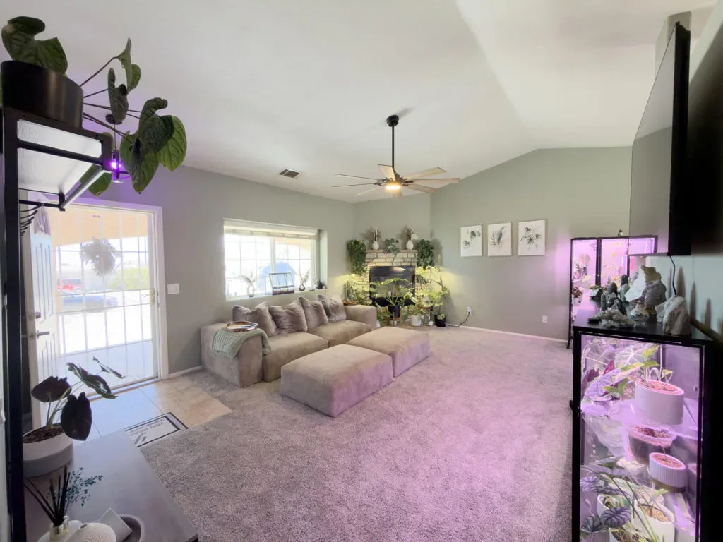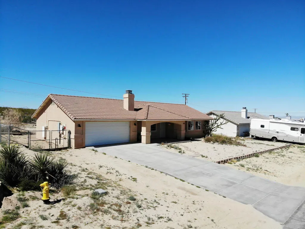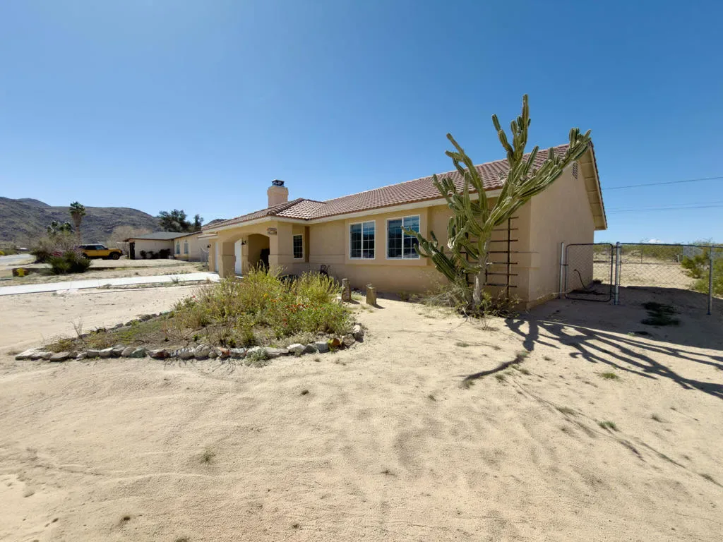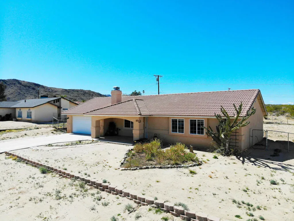The Sherman Heights neighborhood has views to the north and lies in the transitions between 29 Palms and Joshua Tree and is on the slope between the highway and the Joshua Tree National Park. This has been meticulously maintained, has updated kitchen a bathrooms. There is also a new ”optimized power arbitrage” solar system which provides extra targeted savings, that can be deliver paid or assumed along with all (<2 year) new appliances and water heater and water filtration and softener systems. The home is 3 Bedrooms and 2 bathrooms plus a Bonus room and dedicated laundry room along with a finished garage. The Living and kitchen spaces feature high ceilings a central wood fireplace and a ''U'' shaped floor plan. A hall way leads to Bedrooms, and Bathrooms and the laundry room off the kitchen leads to the Bonus room and garage. All rooms have ceiling fans and recessed lighting. The exterior of this home has no neighbor behind and well kept curbapeal in the front. Both sides have space for RV access. Just minuets from MCAGCC 29 palms, in close proximity to three Joshua Tree National Park entrances and Palm Springs, enjoy all the outdoors and night life the desert has to offer, and close proximity to Las Vegas, San Diego, Mexico and Los Angles.