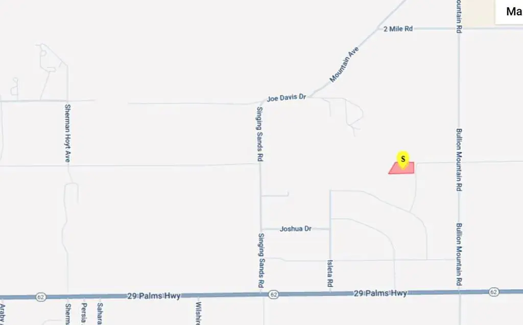 Go Direct. Use a 4WD roads are sand.3.53 Acres located in the City of 29 Palms CA. The location is only .69 miles from Hwy 62.Enjoy colorful sunsets and incredible stargazing. Unobstructed views across the desert terrain to mountains in the distance. Short drive to the world famous Joshua Tree National Park entrance in 29 Palms. See attached Brochure for more information.