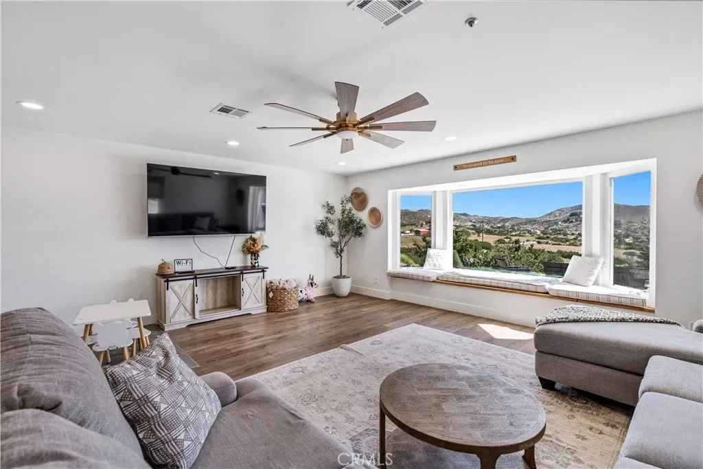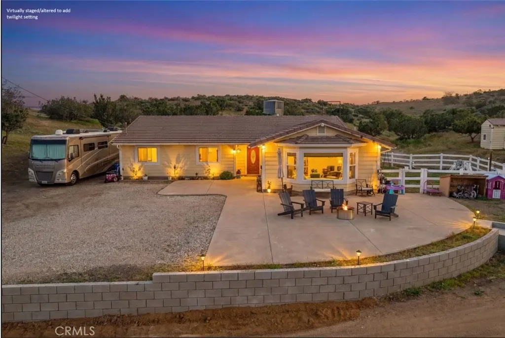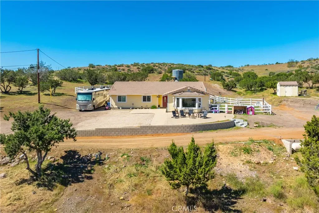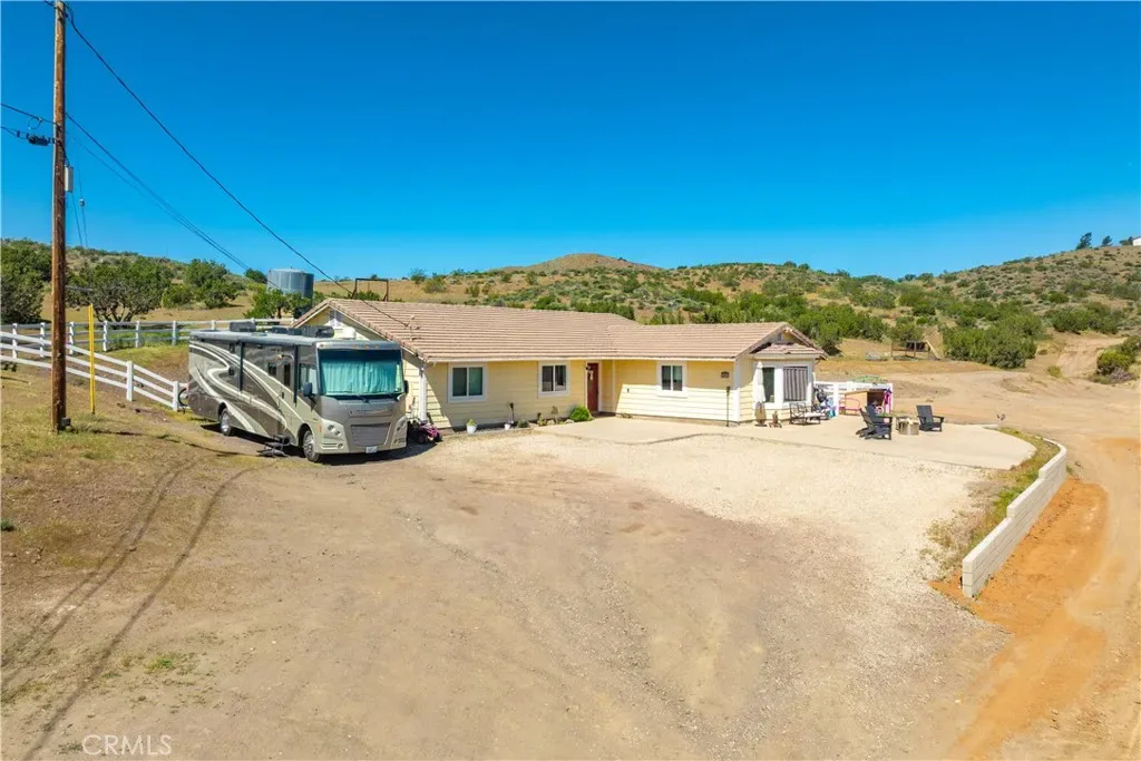 Serene 4 Bed 2 Bath Acton Home with Stunning Panoramic Views! Looking for the comfort of country living with a modern aesthetic? Look no further than this beautiful 2,193sqft home sitting on 4.95 acres and million dollar views! Entering the home, you are greeted with an open floor plan & the perfect balance of comfort and elegance with recessed lighting, beautiful flooring and the grand bay window with seating. You could spend hours seated at this window, soaking in the breathtaking views, letting stress melt away, and that is just the beginning of the comforts this home has to offer. The large living room abounds w/versatility and space for large family gatherings. Inconspicuously placed between the living room and kitchen, you will find the laundry w/tons of storage and access to your back yard. Adjacent to the living room, enjoy a cozy family room w/stunning brick fireplace and room for a pair of club chairs and couch for the family to curl up and enjoy a good read. From this comforting space, there are open sightlines to the cheerful, efficient kitchen that offers ample storage, large center island, beautiful countertops, double ovens & great view of your property. Just off the kitchen is another great space offering the opportunity for dining or bonus space w/built in shelving, storage & access to the back yard. Positioned just off the family room is a short hall that guides you the first sizable bedroom on your right, the second large bedroom on the left, at the end of the hall the third bedroom and beautiful shared bathroom w/elegant fixtures and calming tones. Rounding out the bedrooms is the primary suite w/dual closets, elegant bath w/dual sinks and large walk in shower. Outside, bask in the beautiful surroundings & endless possibilities for your 5 acres. Have horses? Need an ADU? Want to put in a Pool? Yes, yes and yes, the world is your oyster. You will also enjoy the benefits of county water, leased solar and the beauty of Acton country life