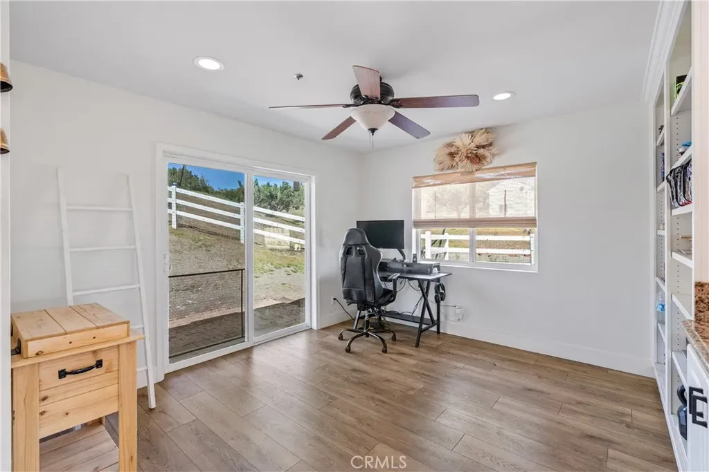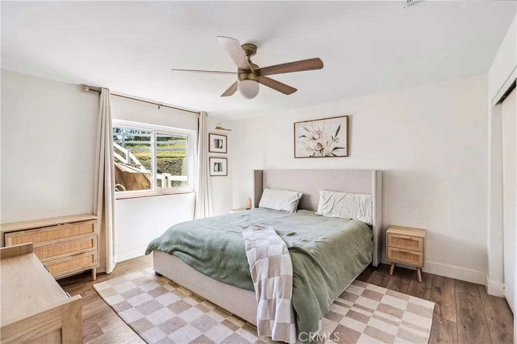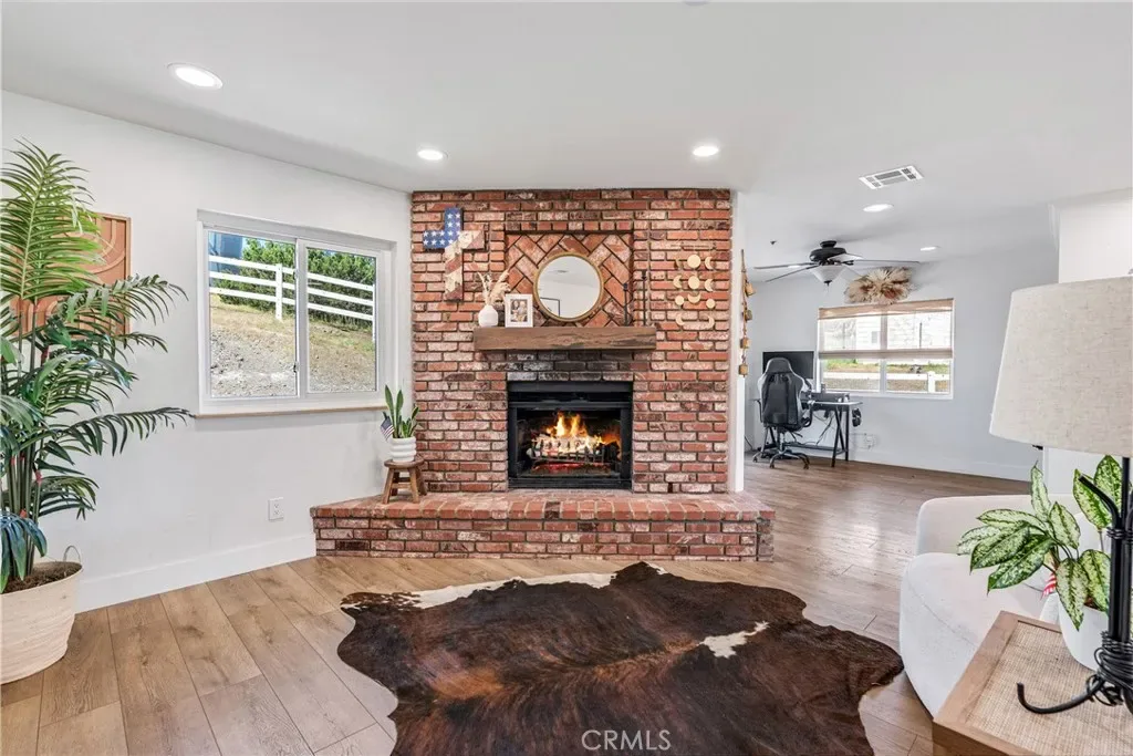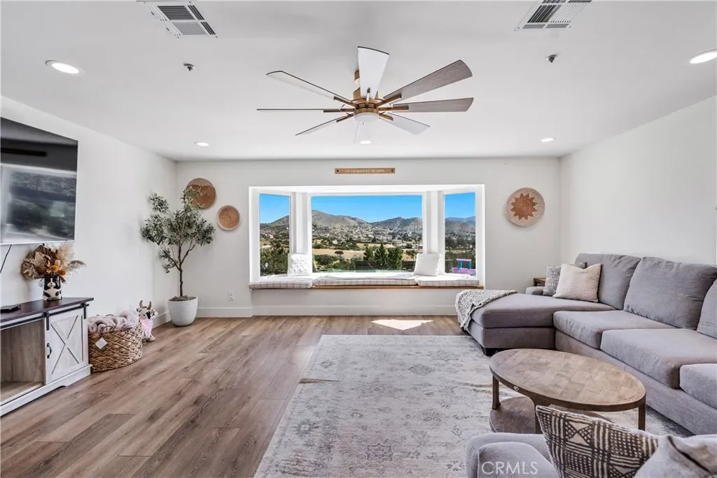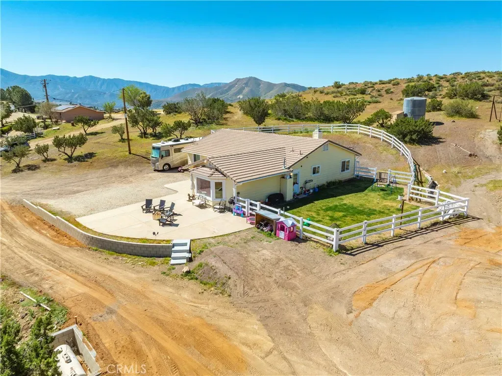 Serene 4 Bed 2 Bath Acton Home with Stunning Panoramic Views! Looking for the comfort of country living with a modern aesthetic? Look no further than this beautiful 2,193sqft home sitting on 4.95 acres and million dollar views! Entering the home, you are greeted with an open floor plan & the perfect balance of comfort and elegance with recessed lighting, beautiful flooring and the grand bay window with seating. You could spend hours seated at this window, soaking in the breathtaking views, letting stress melt away, and that is just the beginning of the comforts this home has to offer. The large living room abounds w/versatility and space for large family gatherings. Inconspicuously placed between the living room and kitchen, you will find the laundry w/tons of storage and access to your back yard. Adjacent to the living room, enjoy a cozy family room w/stunning brick fireplace and room for a pair of club chairs and couch for the family to curl up and enjoy a good read. From this comforting space, there are open sightlines to the cheerful, efficient kitchen that offers ample storage, large center island, beautiful countertops, double ovens & great view of your property. Just off the kitchen is another great space offering the opportunity for dining or bonus space w/built in shelving, storage & access to the back yard. Positioned just off the family room is a short hall that guides you the first sizable bedroom on your right, the second large bedroom on the left, at the end of the hall the third bedroom and beautiful shared bathroom w/elegant fixtures and calming tones. Rounding out the bedrooms is the primary suite w/dual closets, elegant bath w/dual sinks and large walk in shower. Outside, bask in the beautiful surroundings & endless possibilities for your 5 acres. Have horses? Need an ADU? Want to put in a Pool? Yes, yes and yes, the world is your oyster. You will also enjoy the benefits of county water, leased solar and the beauty of Acton country life