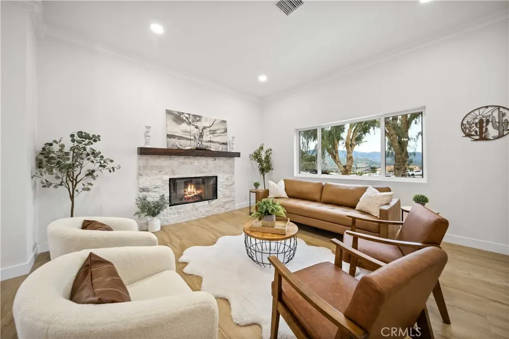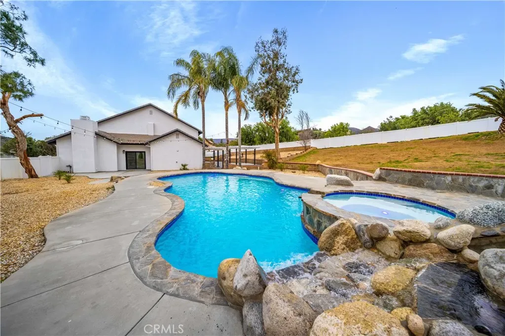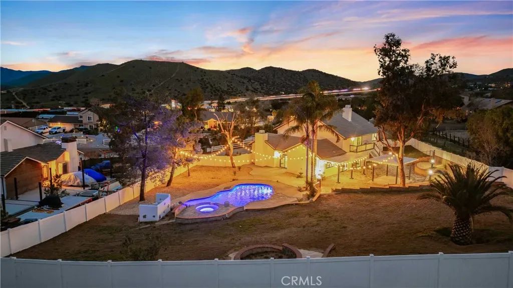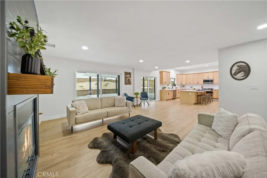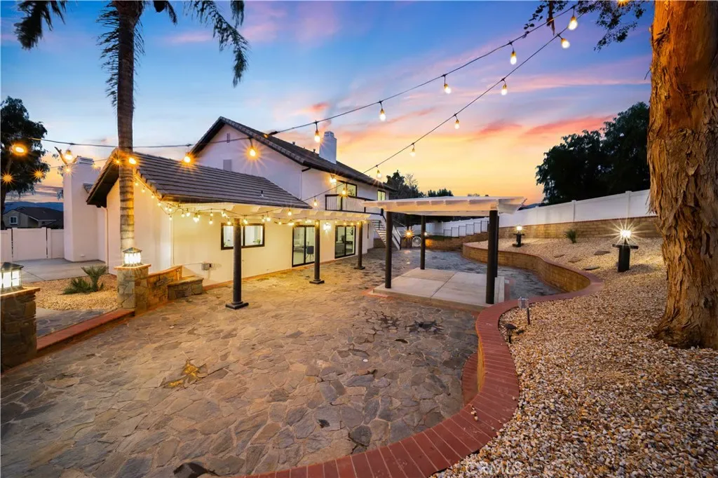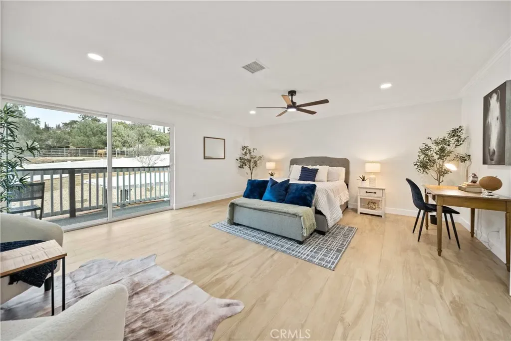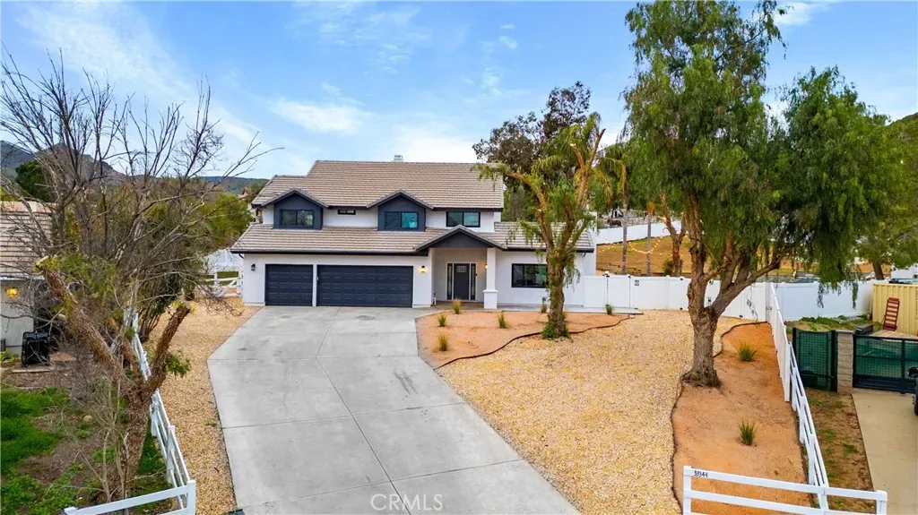 Nestled within a quiet cul-de-sac on a spacious one-acre lot, this beautifully designed two-story Acton residence offers four bedrooms and four bathrooms, thoughtfully configured to meet the needs of the most discerning buyer. With approximately 3,100 square feet of living space, every corner of this home has been carefully tailored to provide both comfort and sophistication. Upon entering, you are welcomed by a spectacular staircase and elegant laminate wood flooring that flows throughout the home in a soft, neutral tone. To the right, a spacious formal living room showcases a grand stone-finished fireplace with a striking wood mantel, creating a warm and inviting atmosphere. Adjacent to this space is a generous dining area, perfectly positioned to capture serene views of the backyard, pool, and spa.The heart of the home is the expansive kitchen, featuring newly installed neutral-toned cabinetry accented with sleek black hardware, abundant storage, and a large center island with seating. Stainless steel appliances complete this stylish and functional space. The kitchen opens seamlessly to the family room, where a second private fireplace adds warmth and character. Two large sliding doors flood the space with natural light and provide effortless access to the backyard. Located on the main floor is a private guest suite, offering peaceful views of the rear yard and its own full bathroom—ideal for visitors or multigenerational living.? Upstairs, the home continues to impress with a spacious primary suite designed as a true retreat. This luxurious space features an oversized walk-in closet and a spa-inspired en-suite bathroom, creating a private sanctuary for relaxation. Down the hall, two additional generously sized bedrooms share a Jack-and-Jill bathroom, providing convenient access from each room. Each bathroom throughout the home is beautifully appointed with elegant tile flooring and stunning tiled showers with full glass enclosures, adding a refined, spa-like touch to every space.? Outside, the expansive one-acre property offers endless possibilities. The beautifully landscaped grounds include a stone-paved patio with exterior lighting and a pergola—perfect for entertaining or unwinding under the stars. An additional tucked-away section of the rear yard provides space for horses, animals, corrals, tractors, or recreational toys, making this property as versatile as it is beautiful.