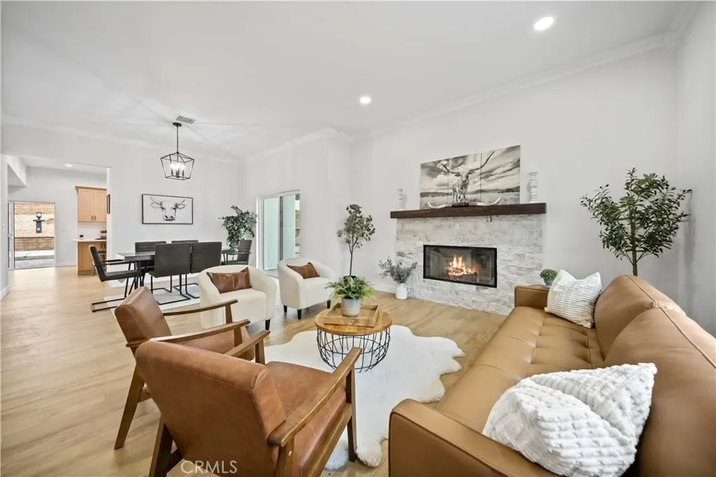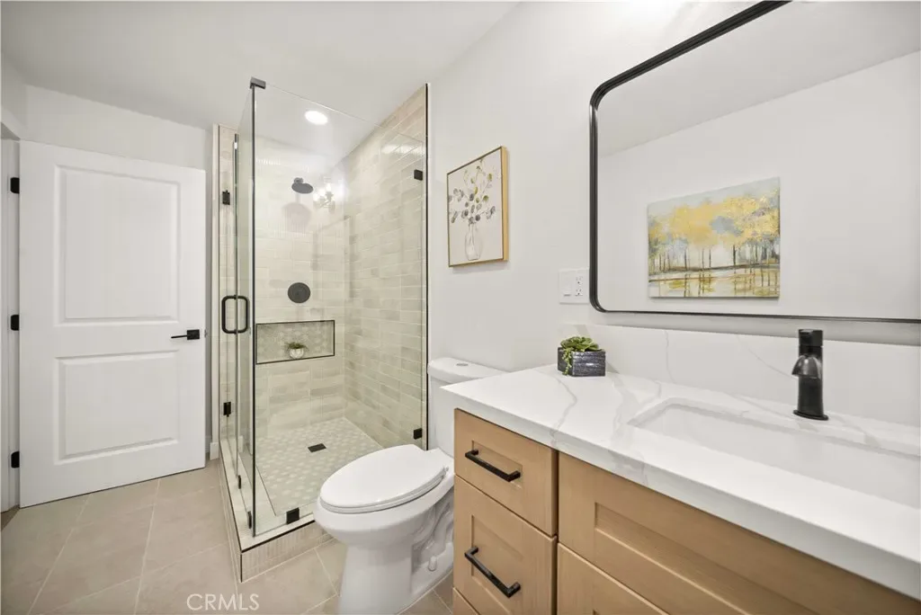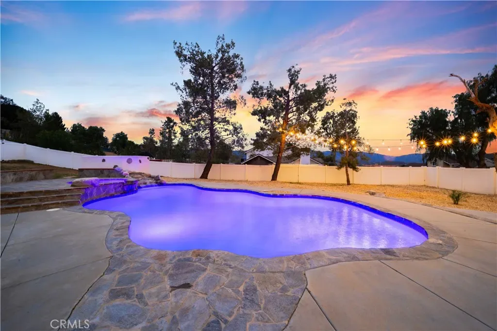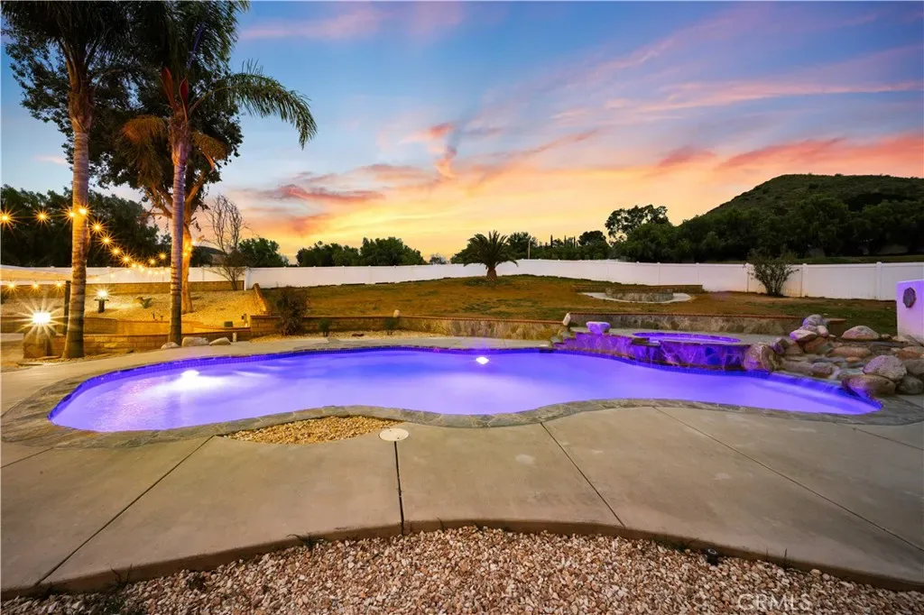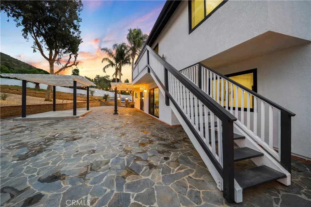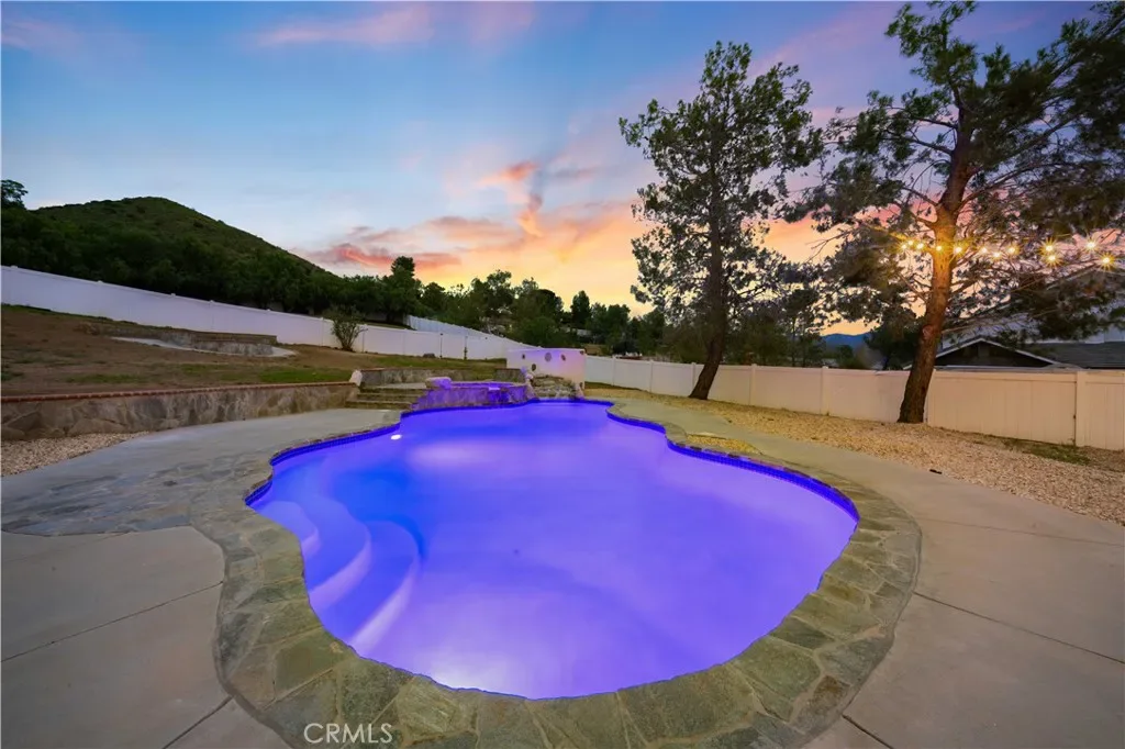 Nestled within a quiet cul-de-sac on a spacious one-acre lot, this beautifully designed two-story Acton residence offers four bedrooms and four bathrooms, thoughtfully configured to meet the needs of the most discerning buyer. With approximately 3,100 square feet of living space, every corner of this home has been carefully tailored to provide both comfort and sophistication. Upon entering, you are welcomed by a spectacular staircase and elegant laminate wood flooring that flows throughout the home in a soft, neutral tone. To the right, a spacious formal living room showcases a grand stone-finished fireplace with a striking wood mantel, creating a warm and inviting atmosphere. Adjacent to this space is a generous dining area, perfectly positioned to capture serene views of the backyard, pool, and spa.The heart of the home is the expansive kitchen, featuring newly installed neutral-toned cabinetry accented with sleek black hardware, abundant storage, and a large center island with seating. Stainless steel appliances complete this stylish and functional space. The kitchen opens seamlessly to the family room, where a second private fireplace adds warmth and character. Two large sliding doors flood the space with natural light and provide effortless access to the backyard. Located on the main floor is a private guest suite, offering peaceful views of the rear yard and its own full bathroom—ideal for visitors or multigenerational living.? Upstairs, the home continues to impress with a spacious primary suite designed as a true retreat. This luxurious space features an oversized walk-in closet and a spa-inspired en-suite bathroom, creating a private sanctuary for relaxation. Down the hall, two additional generously sized bedrooms share a Jack-and-Jill bathroom, providing convenient access from each room. Each bathroom throughout the home is beautifully appointed with elegant tile flooring and stunning tiled showers with full glass enclosures, adding a refined, spa-like touch to every space.? Outside, the expansive one-acre property offers endless possibilities. The beautifully landscaped grounds include a stone-paved patio with exterior lighting and a pergola—perfect for entertaining or unwinding under the stars. An additional tucked-away section of the rear yard provides space for horses, animals, corrals, tractors, or recreational toys, making this property as versatile as it is beautiful.