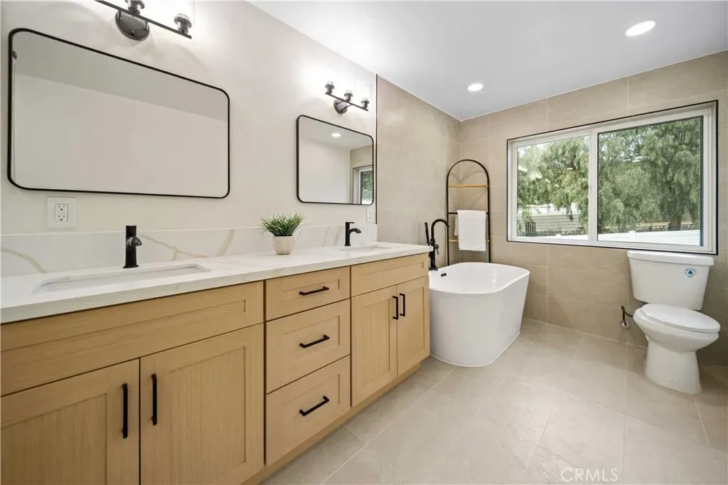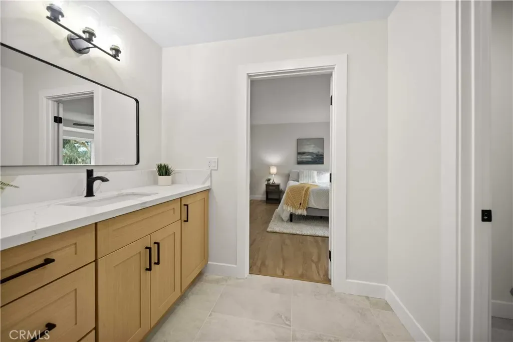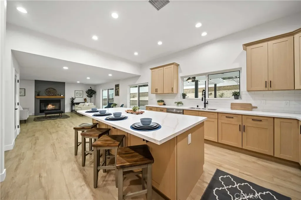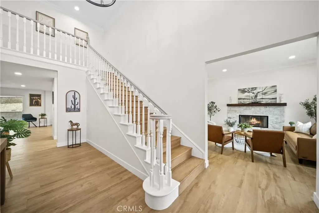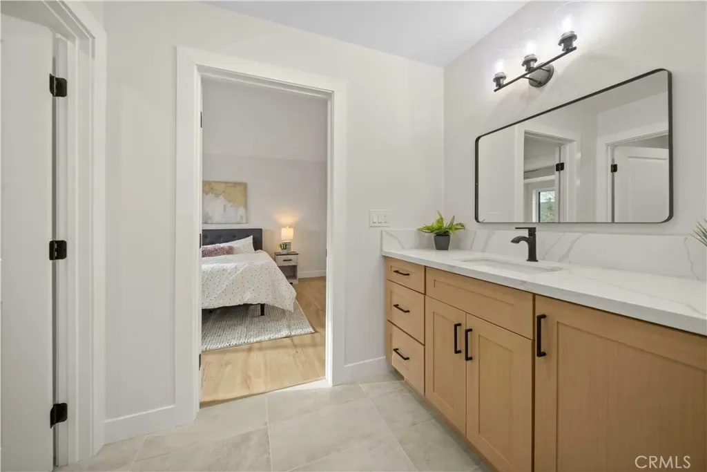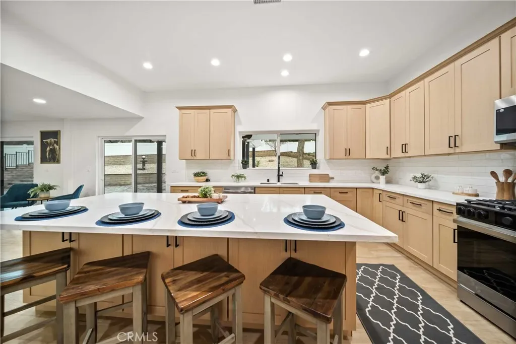 Nestled within a quiet cul-de-sac on a spacious one-acre lot, this beautifully designed two-story Acton residence offers four bedrooms and four bathrooms, thoughtfully configured to meet the needs of the most discerning buyer. With approximately 3,100 square feet of living space, every corner of this home has been carefully tailored to provide both comfort and sophistication. Upon entering, you are welcomed by a spectacular staircase and elegant laminate wood flooring that flows throughout the home in a soft, neutral tone. To the right, a spacious formal living room showcases a grand stone-finished fireplace with a striking wood mantel, creating a warm and inviting atmosphere. Adjacent to this space is a generous dining area, perfectly positioned to capture serene views of the backyard, pool, and spa.The heart of the home is the expansive kitchen, featuring newly installed neutral-toned cabinetry accented with sleek black hardware, abundant storage, and a large center island with seating. Stainless steel appliances complete this stylish and functional space. The kitchen opens seamlessly to the family room, where a second private fireplace adds warmth and character. Two large sliding doors flood the space with natural light and provide effortless access to the backyard. Located on the main floor is a private guest suite, offering peaceful views of the rear yard and its own full bathroom—ideal for visitors or multigenerational living.? Upstairs, the home continues to impress with a spacious primary suite designed as a true retreat. This luxurious space features an oversized walk-in closet and a spa-inspired en-suite bathroom, creating a private sanctuary for relaxation. Down the hall, two additional generously sized bedrooms share a Jack-and-Jill bathroom, providing convenient access from each room. Each bathroom throughout the home is beautifully appointed with elegant tile flooring and stunning tiled showers with full glass enclosures, adding a refined, spa-like touch to every space.? Outside, the expansive one-acre property offers endless possibilities. The beautifully landscaped grounds include a stone-paved patio with exterior lighting and a pergola—perfect for entertaining or unwinding under the stars. An additional tucked-away section of the rear yard provides space for horses, animals, corrals, tractors, or recreational toys, making this property as versatile as it is beautiful.