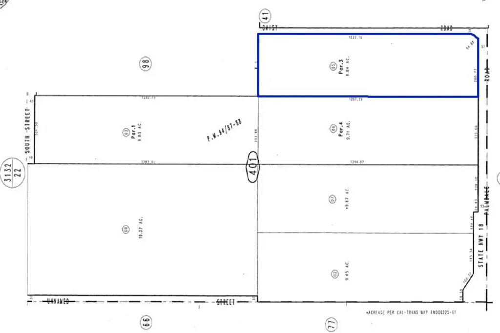 This 8.84 Acres of vacant land is located on the north side of Hwy 18 (aka Palmdale Rd), about 1.7 miles west of Hwy 395 in an almost fully developed residential area. The subject parcel falls within two zoning designations in the City of Adelanto: the northern part is R1 – Single Family Residential 4 DU/AC and the southern part (fronting Hwy 18) is C – General Commercial. The west side of the parcel borders the neighboring school’s ball field, and the north side of the parcel borders an established residential neighborhood. Standard Utilities are next to the site on the north side of the property, Gas, Electric, Water, Telephone, Sewer, buyer to verify all. Hwy 18 is a major east-west arterial in the high desert, linking the Victor Valley and the Antelope Valley. Hwy 395 is a major north-south corridor for both recreational travelers and truck traffic. Where Hwy 18 & Hwy 395 intersect – east of the subject site – commercial development has exploded in recent years. The construction of Walmart, Walgreens, Panda Express, McDonald’s, El Pollo Loco, Chevron, AutoZone and a full retail strip center at the northeast corner of the intersection has added to the existing retail at the Stater Bros shopping center across the street which offers CVS Pharmacy, Starbucks, Denny’s, Del Taco, Long John Silver’s, US Bank and another retail strip center. East of the site, at the corner of Hwy 18 & Verbena, Lines demarcating boundaries are approximate and not surveyed, buyer and buyer’s agent to verify utilities, zoning & exact boundary lines to satisfy yourselves with the property. Google Maps Coordinates for signage location and the property are: 34.508472, -117.430861, bring us your offer today.