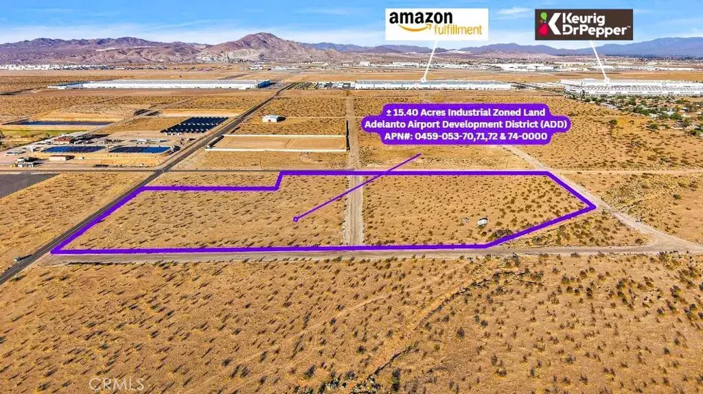 We are pleased to present ±15.40 acres of prime industrial land for sale in the fast-growing City of Adelanto. This offering includes four contiguous parcels with exceptional access from all four sides, making it ideal for logistics, industrial development, or cannabis-related operations. The parcels are identified as APNs: 0459-053-70-0000, 0459-053-71-0000, 0459-053-72-0000, and 0459-053-74-0000.