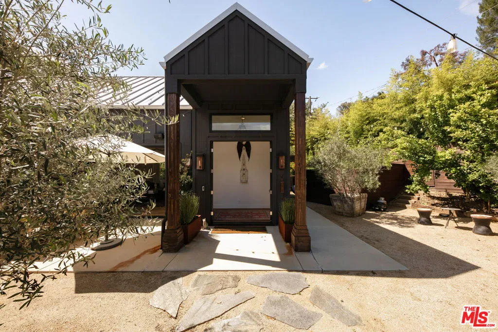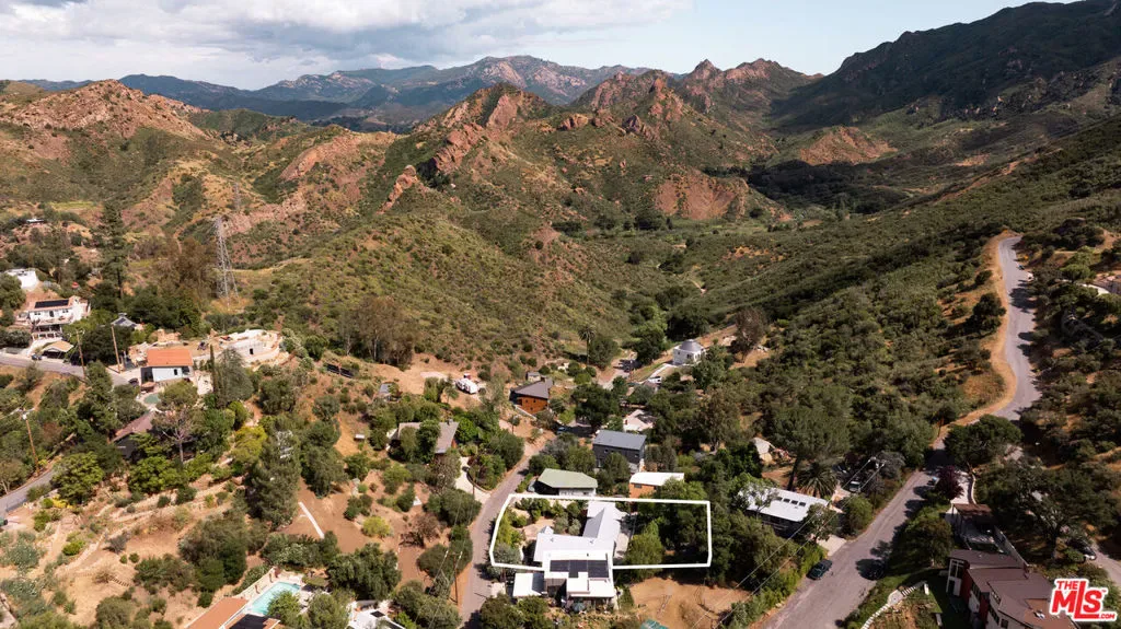 Set on a quiet, tree-lined street in the Malibou Lake community, just moments from the trailhead at Malibu Creek State Park, this 2022-built home feels like a private retreat – equal parts peaceful escape and creative sanctuary. There’s an immediate sense of calm here. Mornings begin with soft canyon light filtering through the trees, afternoons drift into walks to the park, and evenings unfold beneath sparkling string lights, gathered around al fresco dining. Nestled in the foothills of the Santa Monica Mountains, the setting is idyllic – lush, grounded, and deeply connected to nature, yet only minutes from Malibu, Calabasas, Cornell, and the heart of Agoura. Inside, the home blends thoughtful modern design with warm, rustic character. Real hardwood floors run throughout, complemented by soaring cathedral ceilings and 25-foot accordion doors that open to outdoor spaces while framing serene mountain views. The heart of the home is the gourmet kitchen with a generous center island, bar seating, and Viking appliances. Natural light fills each room, highlighting the textures and tones that give the home its quiet charm. Designed in a barn-style aesthetic, the layout balances connection with moments of retreat, with multiple outdoor lounge areas and a jacuzzi tucked into the landscape for a quiet unwind. The grounds feel curated yet organic, with olive trees, roses, and fruit trees creating a setting that invites you to slow down and meander. Outfitted with Sonos speakers throughout and wired with Cat 6, the home is equally suited for relaxed living and elevated entertaining. A professional music studio reflects the home’s creative spirit, offering flexible use as a studio, bedroom, office, or additional living space. A durable metal roof and extensive fire-wise construction paired with a fire-conscious community design offers a rare level of resilience and long-term cost efficiencies, while a two-car garage offers space for storage or a workshop. Set against rolling hills and surrounded by nature, this home invites you to slow down, create, entertain, and live with intention. A true Malibou Lakeside retreat – peaceful, inspiring, and ready for its next chapter.