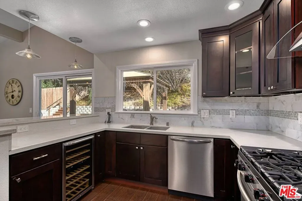 Located in one of Agoura’s highly desired neighborhoods, you will find this single story, 3 bedroom, 2 bathroom home. Step into a spacious, open-concept living area with recessed lighting and a beautifully tiled fireplace creating a cozy yet elegant ambiance. The home is bathed with natural light & has been remodeled, with double pane windows, newer roof newer, A.C., nest thermostat & ring doorbell. The custom-designed kitchen offers stainless steel appliances, custom cabinetry, and a wine refrigerator. Rear and front yard landscaping have been redesigned to provide privacy, added space and water efficiency. Premium pavers all through-out perimeter. Rear yard hillside terracing. 9000 sq ft lot with a large side yard. The garage has been partially converted into a usable space for an office or playroom. Included in the lease if the tenant desires, is a leather couch, 2 beds, a nightstand, dresser, bookshelf and cooking appliances. HOA facilities with Pool, Tennis, Lake access and Golf course. Come see this home as it speaks for itself for design, upgrades, quality and efficiency of space.
