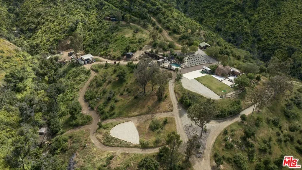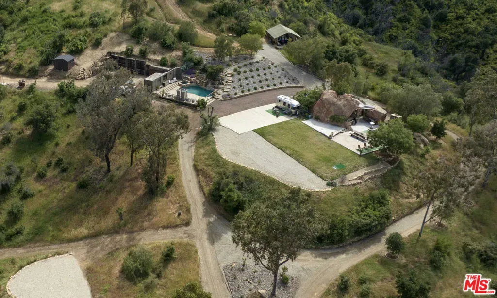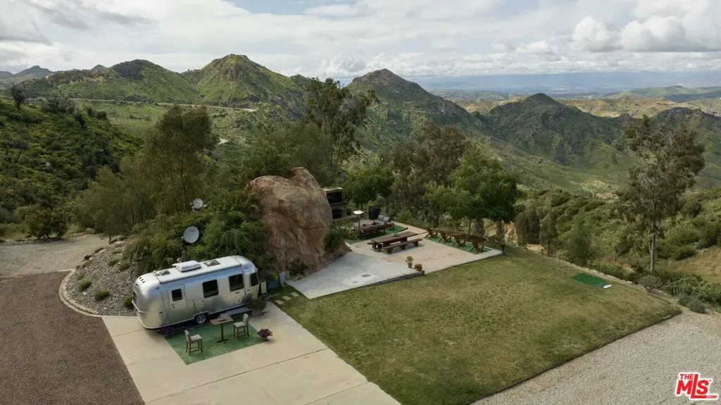 Incredible 40-acre mountain top compound with two helicopter pads, luxury glamping tent, pool, numerous entertaining areas and breathtaking 50-mile views. The property features one-of-a-kind privacy and several flat manicured areas perfect for events. A stunning outdoor kitchen is custom built into a massive sandstone boulder formation and features a custom fireplace with outdoor TV. The glamping tent is built on a true foundation with wrap-around decks and appointed with a full kitchen, washer dryer, double vanity bathroom, king sized bed, HVAC and an outdoor shower. The pool area with its waterfall includes a jacuzzi, beautiful decking and a pool house with bathroom. This fully off grid property also provides immense peace of mind with its large solar system, propane, septic, commercial generator, artesian water well and 27,000 gallons of water storage. Its size and location are ideal for horses as it has great trails on site and nearby as well as two beautiful creeks. It also includes a beautiful Airstream trailer and everything you need to run the property including a tractor, pickup truck, UTV and equipment storage. With all its offerings and so much future potential this one of a kind property is only bound by your imagination. –As in the case of all vacant land, agents and buyers viewing this property do so at their own risk.