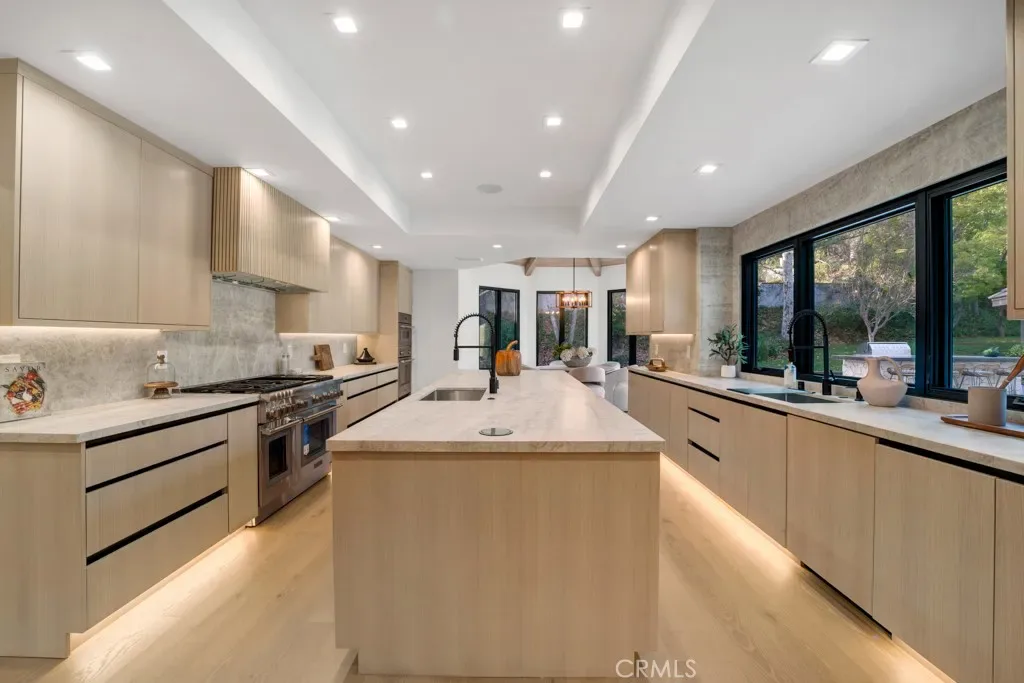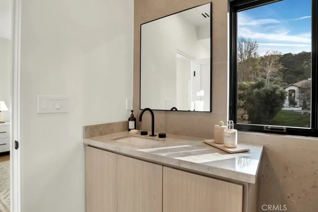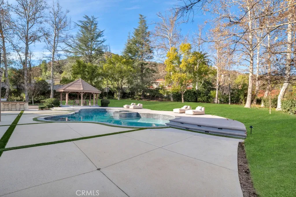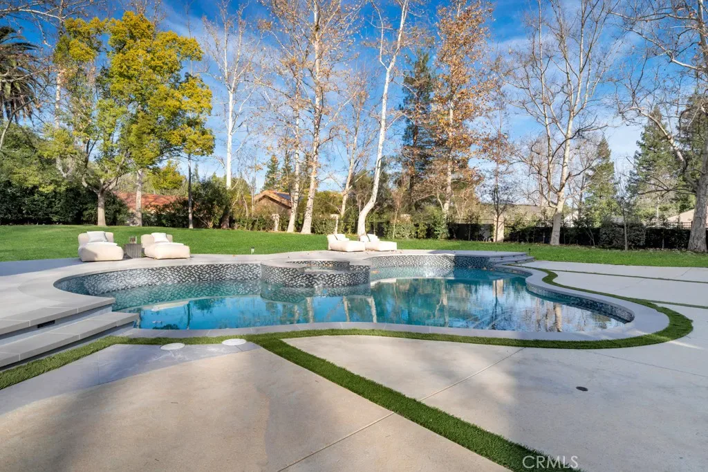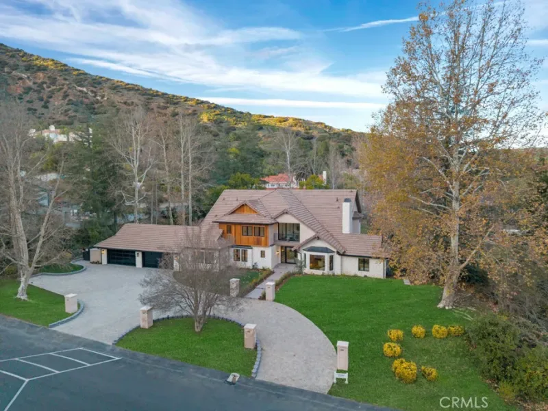 Outside, the backyard unfolds like a resort: a pool and spa, a barbecue area, expansive lawns, and meticulously landscaped grounds—all framed by the Santa Monica mountains. Located in a picturesque, gated enclave with direct access to hiking, biking, and equestrian trails, yet minutes from beaches, premier shopping, and fine dining, this property embodies the pinnacle of contemporary living. Every detail has been thoughtfully crafted for the most discerning buyer.