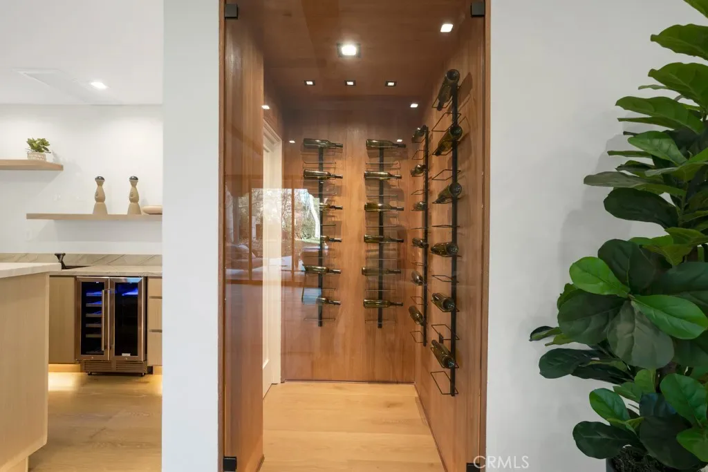 Enter through a grand foyer with soaring ceilings into a space where architectural light meets refined comfort. Walls of glass invite in nature, seamlessly blending indoor and outdoor living. A formal dining room with a custom-built buffet establishes timeless elegance, while a sweeping family room with a striking fireplace, full bar, and walk-in wine cellar offers an entertainer’s paradise.
