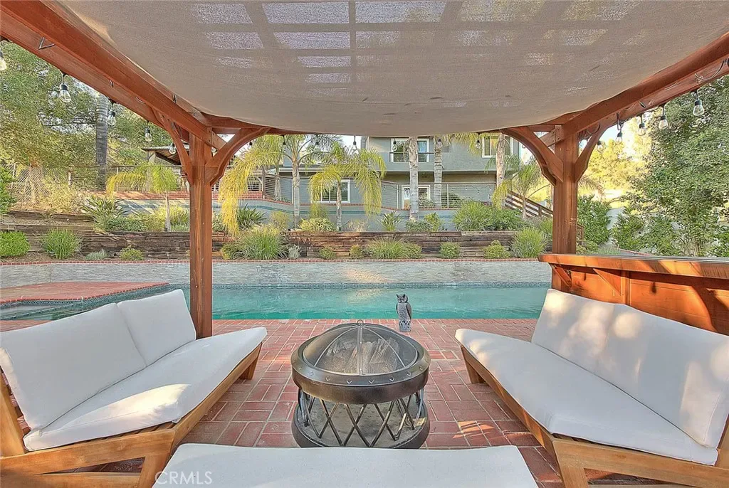 Gated private property nestled in the scenic Santa Monica Mountains, offering a blend of seclusion and natural surroundings, just minutes to Malibu and Malibu Lake. Set in a desirable location, the home provides a strong sense of privacy with tranquil landscapes and mountain views. Award-winning Las Virgenes School District! The spacious interior features 5 bedrooms (4 bedrooms per Title), offering flexibility for living, guests, or a home office. Light-filled living areas create a warm and inviting atmosphere, complemented by well-maintained real hardwood flooring throughout. The main level includes an open dining area with a skylight, bringing in abundant natural light, adjacent to the gourmet kitchen featuring ample cabinetry, pantry storage, generous counter space, stainless steel appliances, and a double-pane window overlooking the front yard. The lower level features a stunning double-sided fireplace serving both the living and family rooms, enhanced by two skylights above. The family room opens to the backyard through sliding glass doors with views of the gazebo. A wet bar is conveniently located next to the family room, adding functionality for entertaining. Two additional lower-level bedrooms share a 3/4 bathroom, including one bedroom with French doors leading to the backyard. Upstairs offers a primary suite with a sliding glass door opening to a private balcony, dual sinks, a walk-in closet, a separate shower, and a soaking tub with mountain views. Two additional suites each include walk-in closets, along with a separate room suitable for an office, library, or flexible use. The resort-style backyard features a large heated pool, spa, gazebo, and a large private wooden deck for entertaining, surrounded by natural landscaping with palm trees, creating a private outdoor retreat. Conveniently located near shopping, dining, hiking trails, and other local amenities.