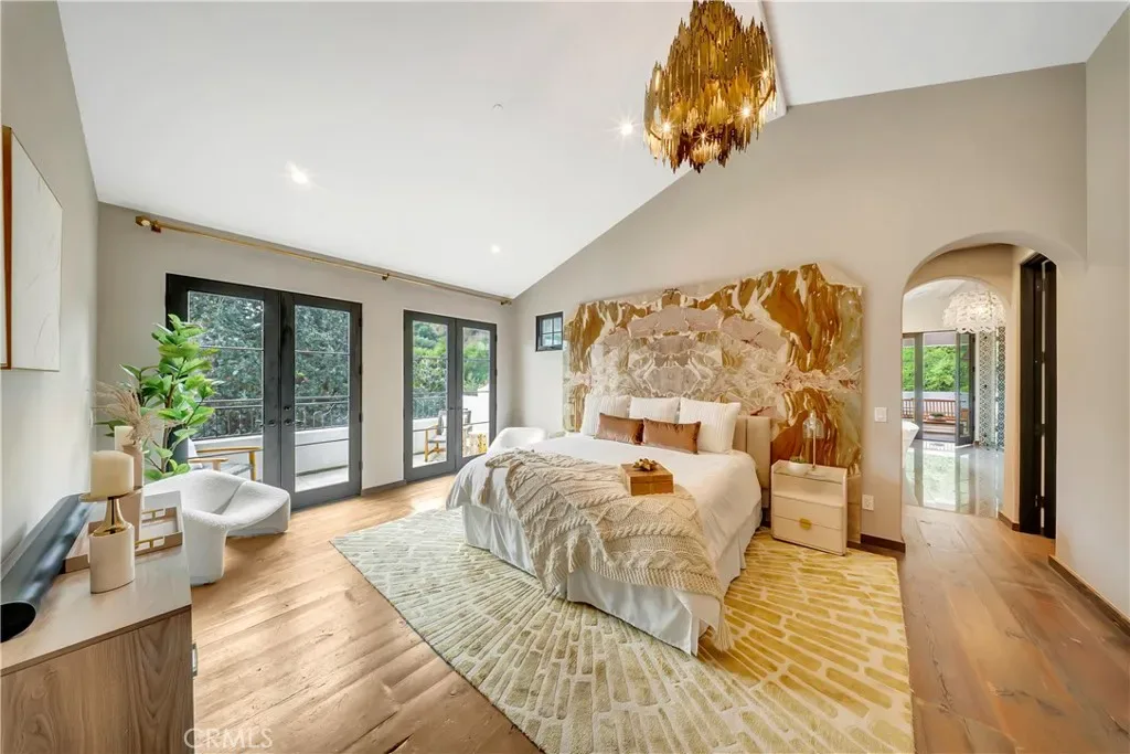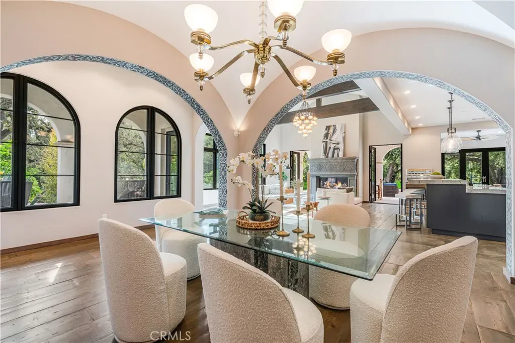 Agoura Hills estate on 2.25 gated acres. Welcome to your private sanctuary in Old Agoura’s equestrian community that integrates with nature. Built in 2018, this luxurious residence features hand-finished Barnwood floors, and expansive glass walls flooding the home with natural light. The gourmet kitchen boasts Wolf and Sub-Zero appliances, while the primary suite offers a spa-inspired ensuite, his/hers closets, dual sinks and private balcony with sauna overlooking lush landscapes. Indoor theater/rec room, gym and a downstairs bedroom make this a home equipped for everything. Exceptional outdoor amenities , serene yoga area, and a rope bridge over Chesebro Creek leading to a private glamping retreat or serene yoga area. With resort-style entertaining spaces, room for horses, and direct trail access, this estate epitomizes California outdoor living. Automated smart home controls lighting, irrigation, security, pool, and sound systems are built in. Minutes from Malibu, Calabasas, and Westlake Village. A rare opportunity to own this spectacular retreat.