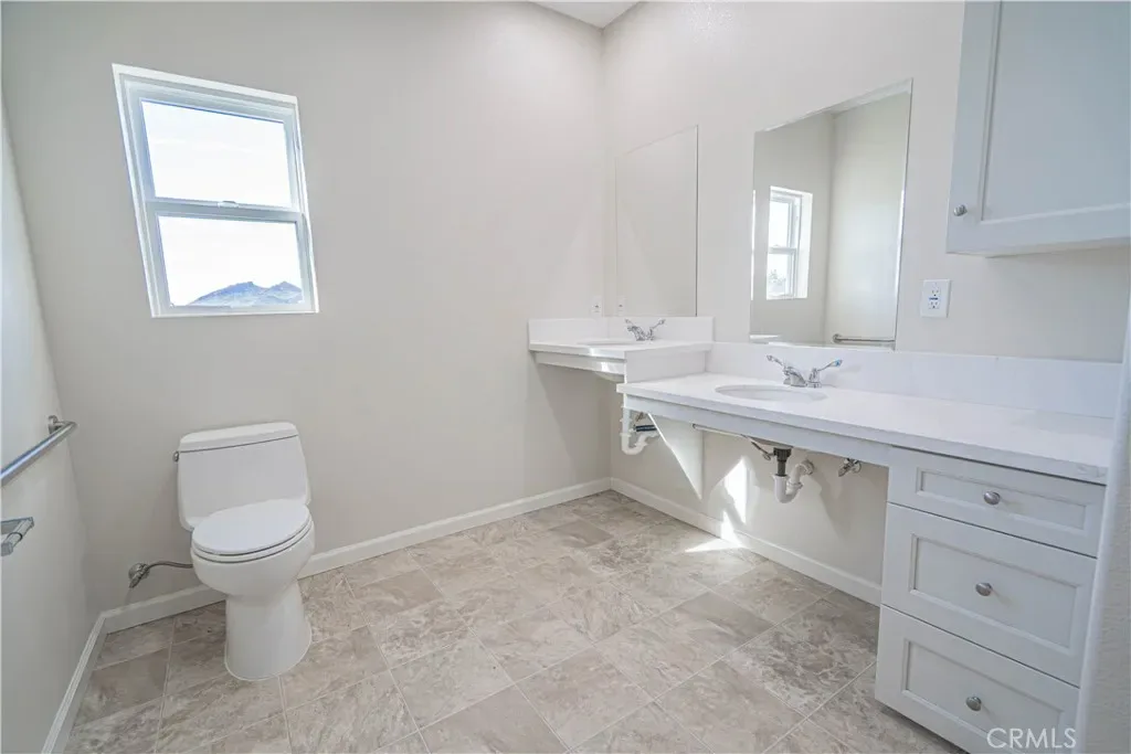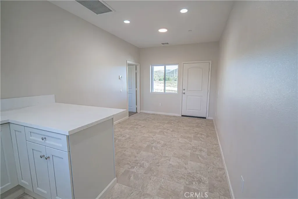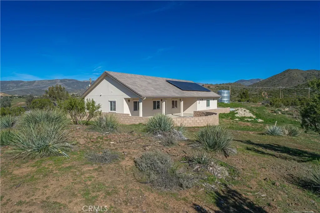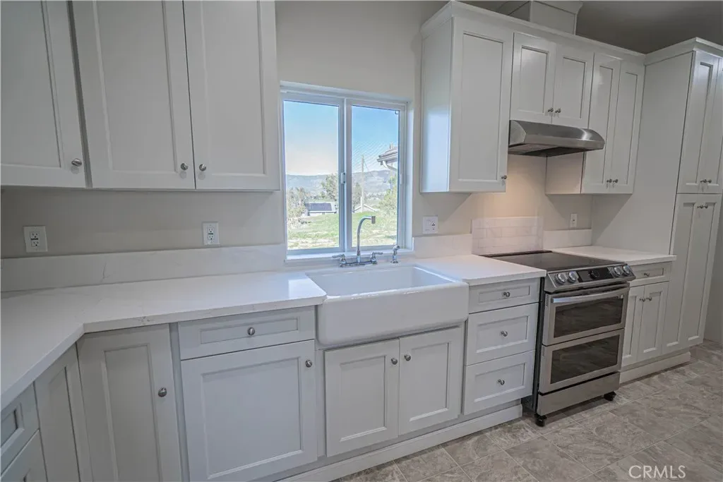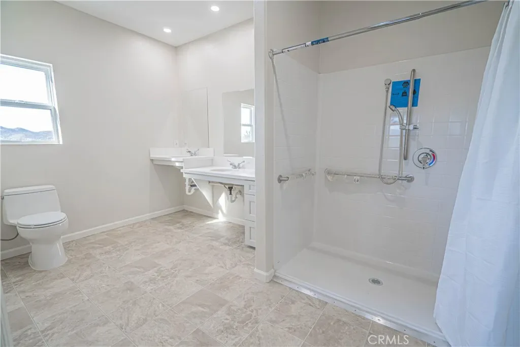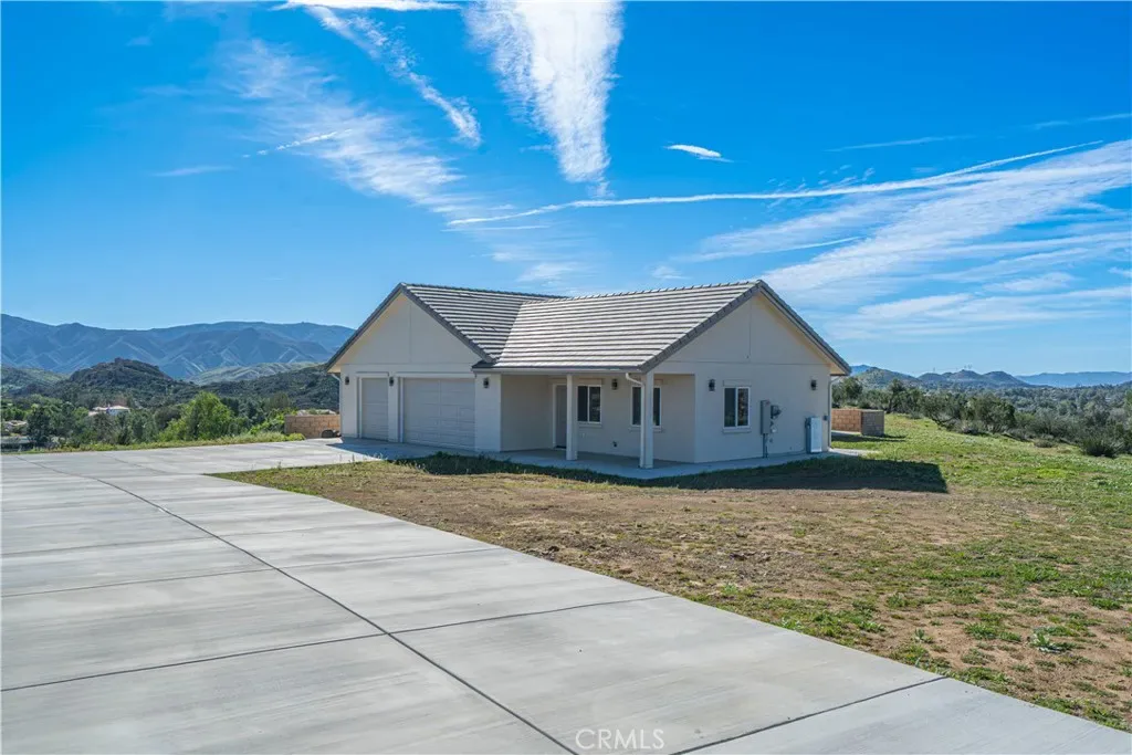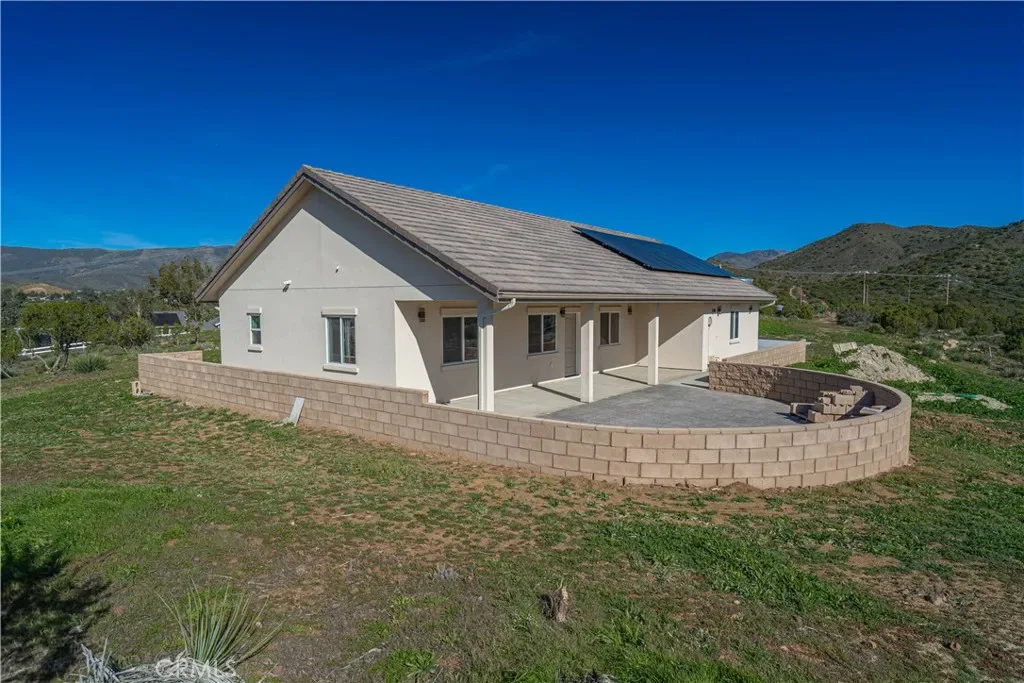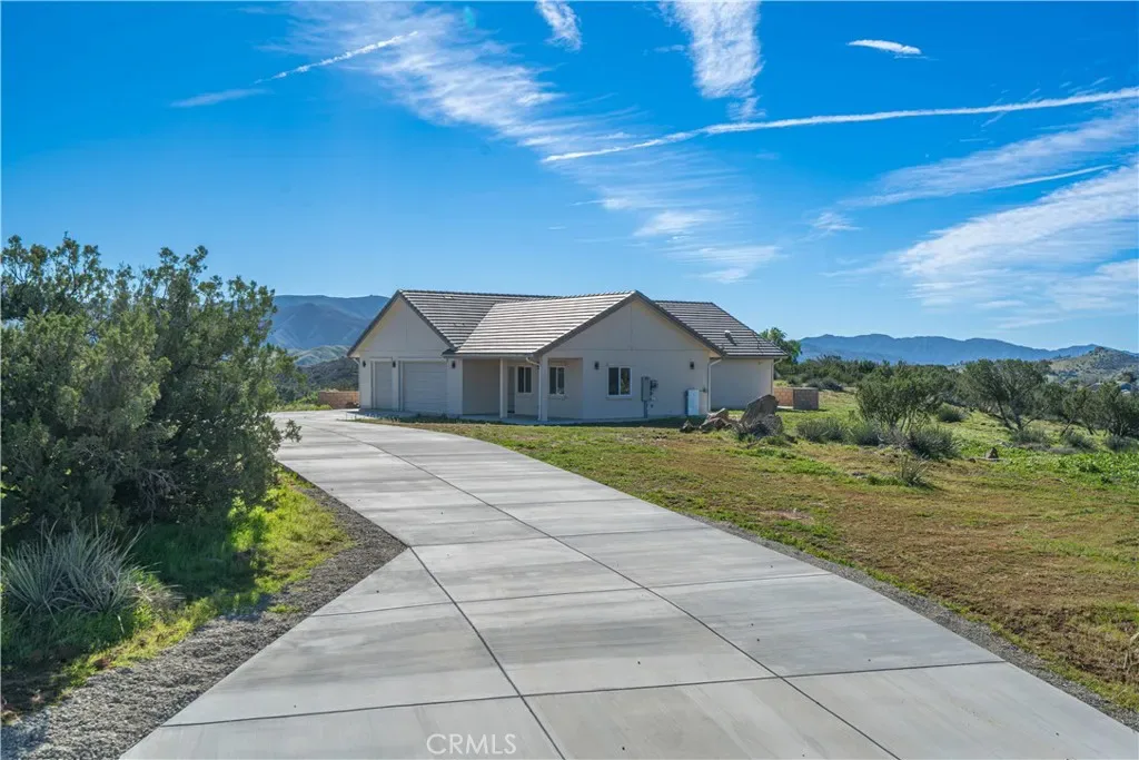 Never lived in single-story new construction offering exceptional flexibility with true next-gen living and thoughtfully designed accessibility features. This accessible home includes a fully private and separate living space with its own entrance, one bedroom with closet, full accessible bathroom, living area, and kitchenette with farmhouse sink—ideal for multi-generational living, in-law accommodations, caretaker quarters, or extended guest use. The entire residence is designed for step-free living with no interior steps, widened doorways, roll-friendly flooring, and barrier-free layouts throughout, making it a mobility-friendly and wheelchair-accessible house. All bathrooms feature raised and roll-under vanities and sinks, while the primary suite offers a walk-in closet and an accessible bathroom with a roll-in shower and grab bars. The light and bright interior features 9-foot ceilings, solar tube daylighting, and an efficient mini-split HVAC system. The main kitchen is designed for both function and style with tall counters, center island, farmhouse sink, Samsung dual convection oven, and quality finishes. This all electric home is complemented by Milgard fiberglass windows, owned solar with Tesla battery system, and a drywalled three-car garage housing the water pressure pump and filtration systems from the elements. Set on a private 4.8 acre lot, this single-story accessible luxury home enjoys stunning views of Vasquez Rocks and Saddleback Mountain from the covered front patio and paved courtyard, offering a rare opportunity to own a mobility-friendly, energy-efficient, multi-generational home with privacy, space, and scenic surroundings.