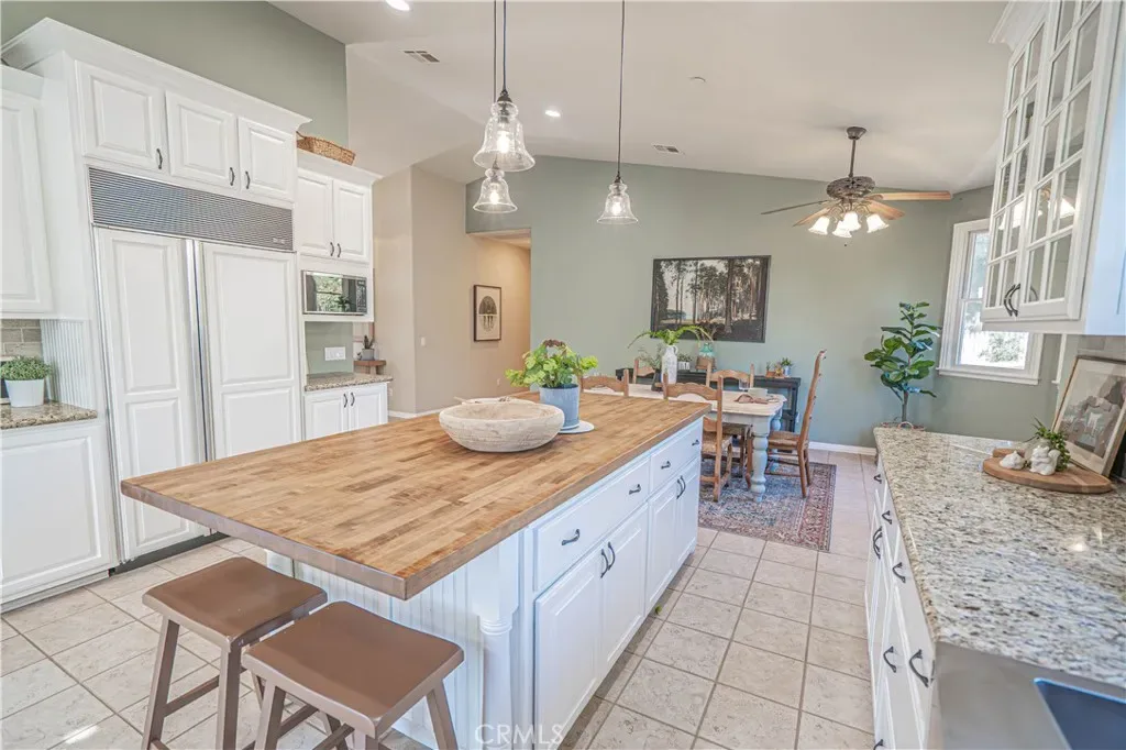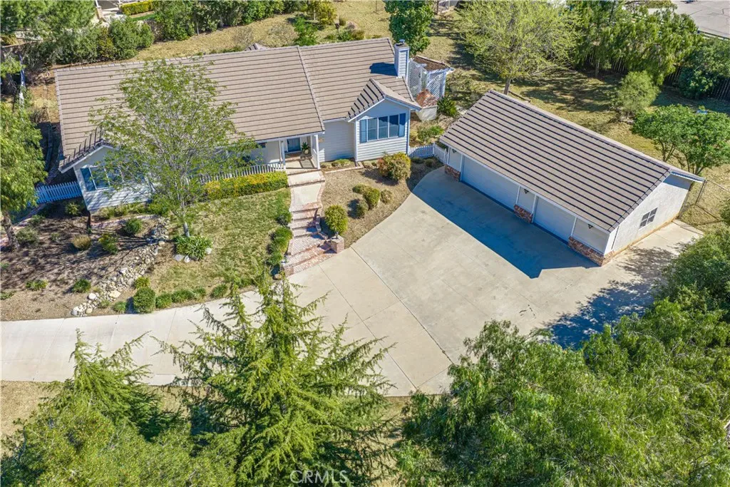 Ideally located in the heart of town in Agua Dulce, this custom-built single-story home set on 1.23 flat usable acres offers the perfect blend of small-town convenience, privacy, and relaxed country living. Built in 2002 and offering just under 2000 sq ft of warm, inviting living space with paved road access and natural gas service, this turnkey property provides just enough land to enjoy space and freedom without overwhelming maintenance. The light and bright interior is centered around a gourmet kitchen featuring granite countertops, stainless farmhouse sink, cabinet-faced built-in Sub-Zero refrigerator/freezer, butcher block island, walk-in pantry and abundant cabinetry. Just off the kitchen is a covered patio ideal for entertaining with a built-in BBQ and brick pizza oven. Vaulted ceilings enhance the kitchen, dining and living areas, complemented by beautiful hardwood flooring, wood-cased Anderson dual-pane windows and classic shutters on most windows. A cozy wood-burning fireplace anchors the main living space. The spacious primary suite offers crown molding, a large bathroom and two generous closets, while two additional bedrooms provide flexibility for guests, family or home office use. Outdoors, enjoy a charming front porch with Saddleback Mountain views, mature fruit trees, a productive garden with automatic sprinklers, RV parking space and an existing chicken coop structure. The front property area allows room for future barn, corrals or additional improvements. Water supply is supported by two wells plus a 4,000-gallon storage tank. A long paved driveway leads to the home and the detached three-car garage/workshop with 240-volt power, insulated shop bay, air compressor and industrial air filtration system, along with a separate storage shed. Enjoy true in-town convenience with nearby restaurants, local market, coffee shop and hardware store just minutes away, plus easy access to Vasquez Rocks and surrounding riding and hiking trails — just 10 miles from Santa Clarita.