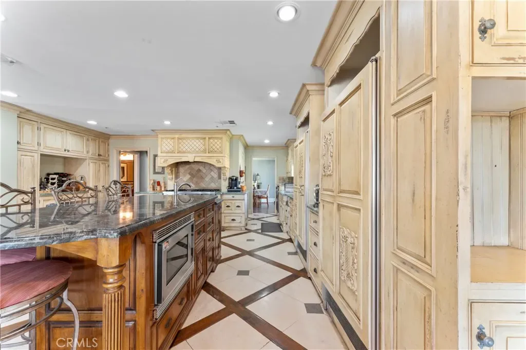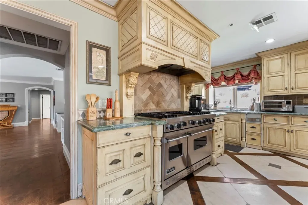 Step through the elegant Front Entry into the Expansive Great Room, where an 0pen-Concept layout blends the Dining and Living areas for effortless entertaining. A conveniently placed Guest Bedroom sits just off to the side. The hallway is adorned with Extensive Cabinetry, offering optimal organization. Escape to the Lavish Primary Suite, Highlighted by a Dramatic Double-Sided Rock Fireplace, an Office Nook, and Direct access to your Private Backyard. Indulge in the Spa-Inspired Bath, featuring granite countertops, custom cabinetry, a freestanding soaking tub, dual sinks, a beautifully tiled shower, and a spacious walk-in closet. Three additional bedrooms and 2.5 baths, along with a dedicated laundry room, provide plenty of space and functionality. Culinary enthusiasts will love the chef’s kitchen, which features antique-style cabinetry, granite counters, a central island with breakfast bar, professional-grade Viking appliances, Double Ovens, and Premium Sub-Zero Refrigerator & Freezer. An Expansive Walk-In Pantry ensures exceptional storage, while the bright Breakfast Nook overlooks French doors leading to the outdoor patio. The family room is Enhanced by Soaring Vaulted Ceilings and a Rock Fireplace.