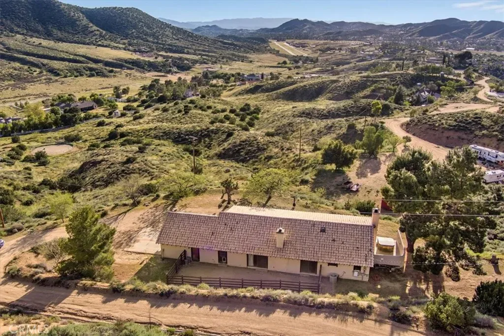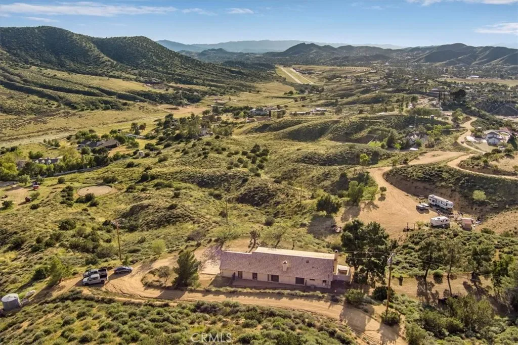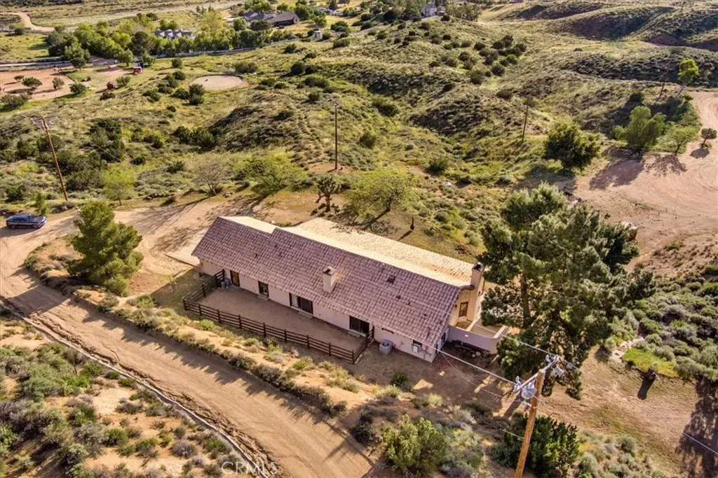 A private 2.5-acre country ranch style home with a million-dollar view awaits you located in the heart of Agua Dulce. This beautifully maintained property built in 1992 features 3 bedrooms and 2½ baths and is single level accessible. Saltillo tiles enhance the spacious country kitchen which opens onto an open dining area. The generous living room and primary suite both are warmed by romantic woodburning fireplaces and hardwood flooring. A covered patio surrounds the front of the property with a spa conveniently located off the primary suite. With a potential for horse facilities and plenty of parking, there is plenty of space to spread out. Owned Tesla batteries for exceptional backup makes this a haven for working from home. A well and 250-gallon propane tank as well as interior sprinklers and dual paned windows are features that make this home a perfect fit. With convenient access to Los Angeles and the San Fernando Valley, access to the property is up a mile and a half of well-groomed decomposed granite road. A peaceful rural lifestyle.