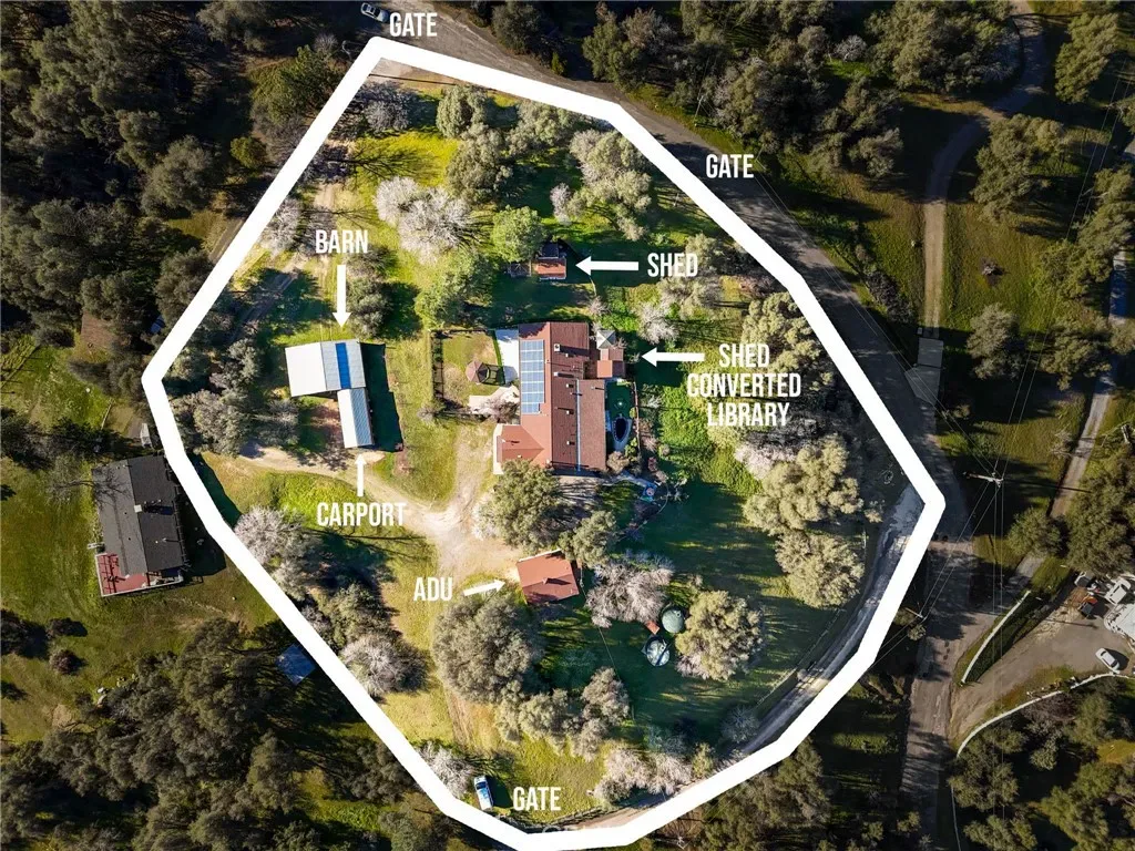 Live in the main home and rent the ADU, rent both for maximum income potential, or create a private multi-generational compound. With three gated entrances, you can easily section off areas for privacy, horses, or separate access points. Equestrian lovers will appreciate the 2-stall horse barn, equally suited as a workshop, hobby space, or even a unique event area. There is RV parking, two storage sheds, one of which is just off the primary suite and has been transformed into a cozy private library, the perfect retreat for morning coffee, reading, or working from home.