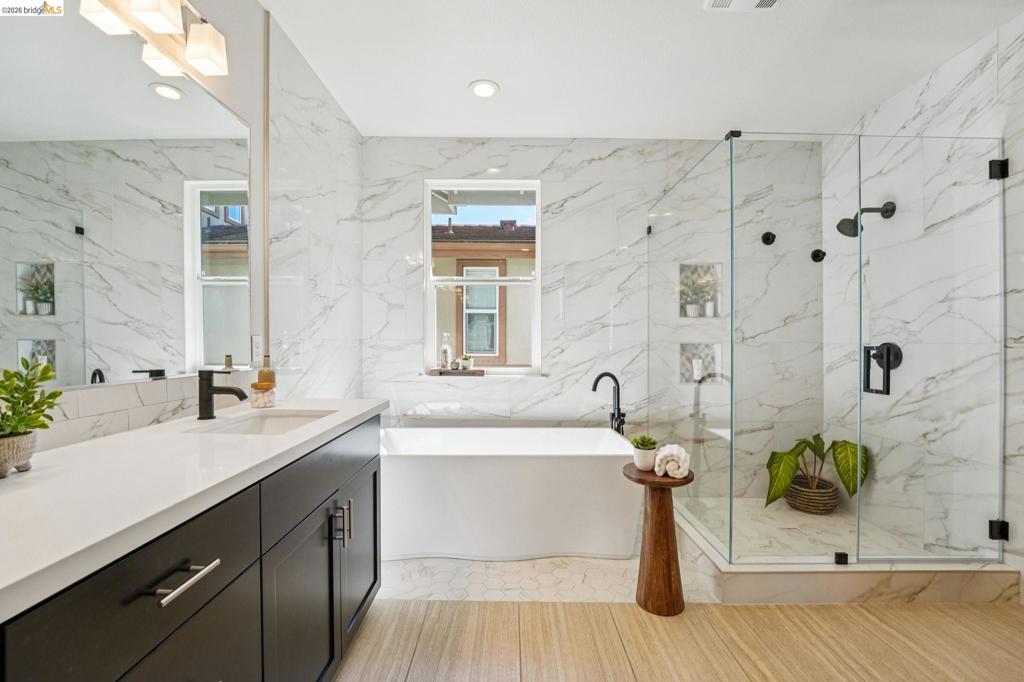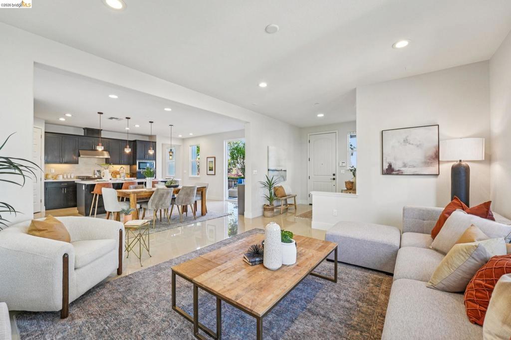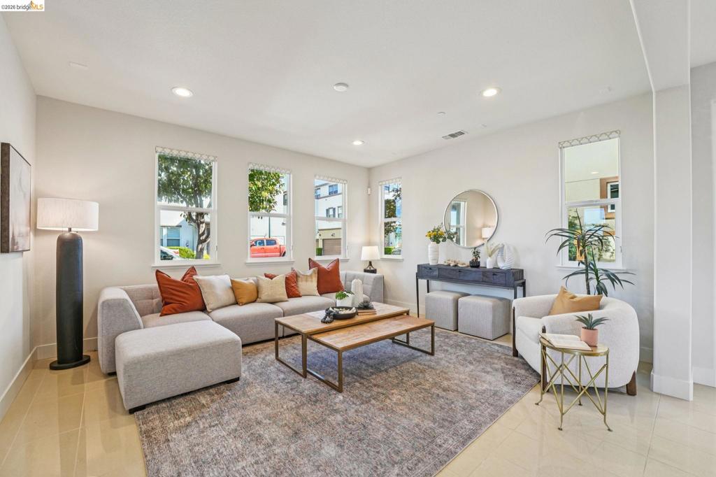 Rare opportunity to own one of the most sought-after models in a prime corner-lot location. This light-filled home features a desirable level-in entry, soaring 9-foot ceilings, and extensive upgrades throughout. Distinguished by its generous layout, the home features dual side yards, double wrap-around balconies, and abundant natural light throughout. The main level includes a full bedroom with ensuite bath – ideal for guests / extended family. The open-concept kitchen, dining, and living area flows seamlessly to two private patios, perfect for indoor-outdoor dining and entertaining. Upstairs, the expansive primary suite offers a private retreat with a wrap-around balcony showcasing Oakland and SF skyline views, a spa-like bath, and walk-in closet. Two additional bedrooms, a full bath, laundry room and a dedicated home office complete the 2nd level. Additional highlights include a 2-car garage with ample storage and a prime location just steps from the 8-acre Estuary Park, waterfront parks, playgrounds, and open green space. Enjoy easy access to Alameda Landing (Target, Safeway, Jollibee, and more), along with nearby marina trails, SF ferry service, Seaplane Lagoon, BART shuttles, and Spirits Alley. Don’t miss this exceptional opportunity to experience the best of Alamed Landing!