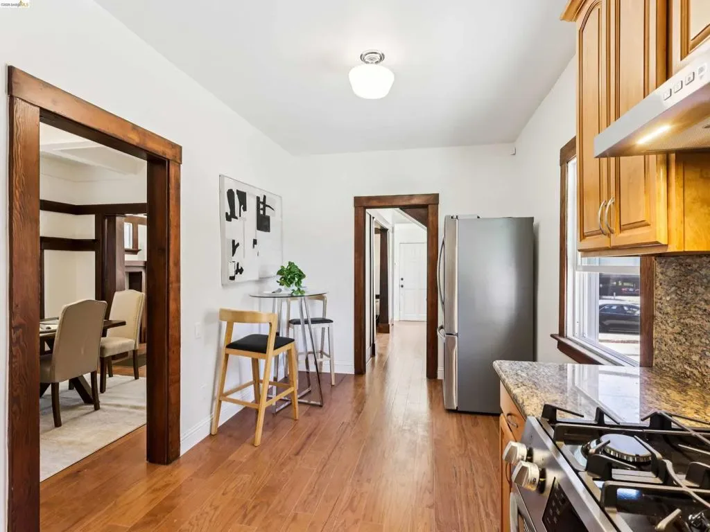 With two buildings on one lot, a single family home and a duplex, and all 3 units delivered VACANT, this is a rare opportunity in Alameda! Both buildings have been significantly upgraded with new roofs, windows, furnaces, floors, electrical & more. The front house (427) is a 3 bed, 2 bath Craftsman with beautiful architectural details like coffered ceilings, built-ins, and more. New hardwood floors throughout, new wiring & 200A service, seismic retrofit, and 2 new independent central heat systems, one per floor. The rear duplex (425) is a Late Victorian with Colonial Revival influence. The upstairs unit (425 B) has 2 beds & 1 bath and features beautiful architectural details including ceiling medallions, cased openings, picture rails & 11 foot ceilings. The floor plan features a living room, sitting room & formal dining room. The sitting room could be converted into a 3rd bedroom or private office by adding 1 door. The lower unit (425 A) is also a spacious 2 bed, 1 bath unit. Each building has its own laundry room & all units are separately metered for gas & electric. Tons of parking in front & plenty of room to relax & garden in the backyard. It’s a short walk to the beach, Webster Street & a short commute to major job centers including Oakland, San Francisco & Silicon Valley.