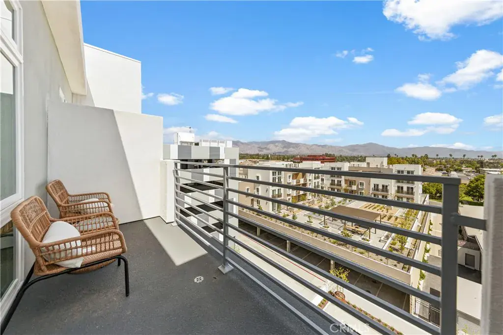 bedroom upstairs, offering comfort and privacy throughout. This unit has two balconies with stunning views of the surrounding mountains and city skyline, while an additional secluded
