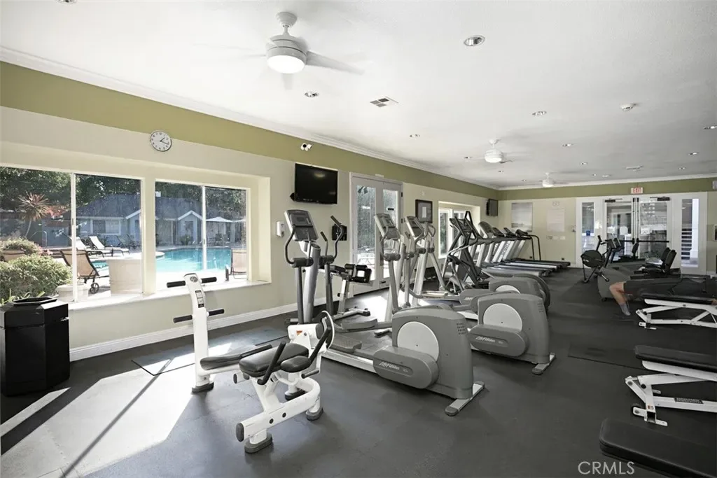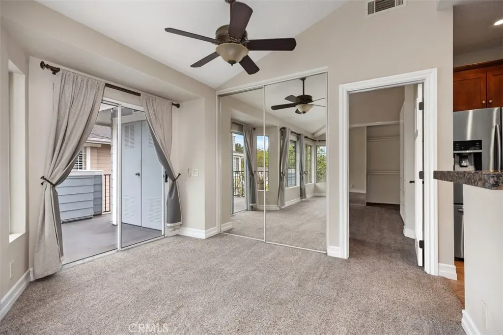 Welcome to the highly desirable Canyon Villas community in Aliso Viejo. This exceptional upper-level residence offers privacy with no one above, soaring high ceilings, and an abundance of natural light that creates a bright and airy living environment. Offering approximately 1,122 sq ft of living space, the thoughtfully designed floor plan features two spacious en-suite bedrooms, each with oversized walk-in closets and additional built-in storage, while the primary suite also includes an extra standard closet. A mirrored closet in the dining area provides even more functional storage. Enjoy comfortable, open living spaces that flow seamlessly to a private balcony, complete with laundry area. The property includes a one-car garage along with an additional assigned parking space for added convenience. Residents enjoy resort-style amenities including pool, spa, fitness center, and clubhouse. Ideally situated just minutes from Costco, Walmart, popular dining, parks, and major freeways for ultimate convenience. This home offers the perfect blend of comfort, convenience, and lifestyle. A rare opportunity to own a bright, upper-level unit with exceptional storage and layout.