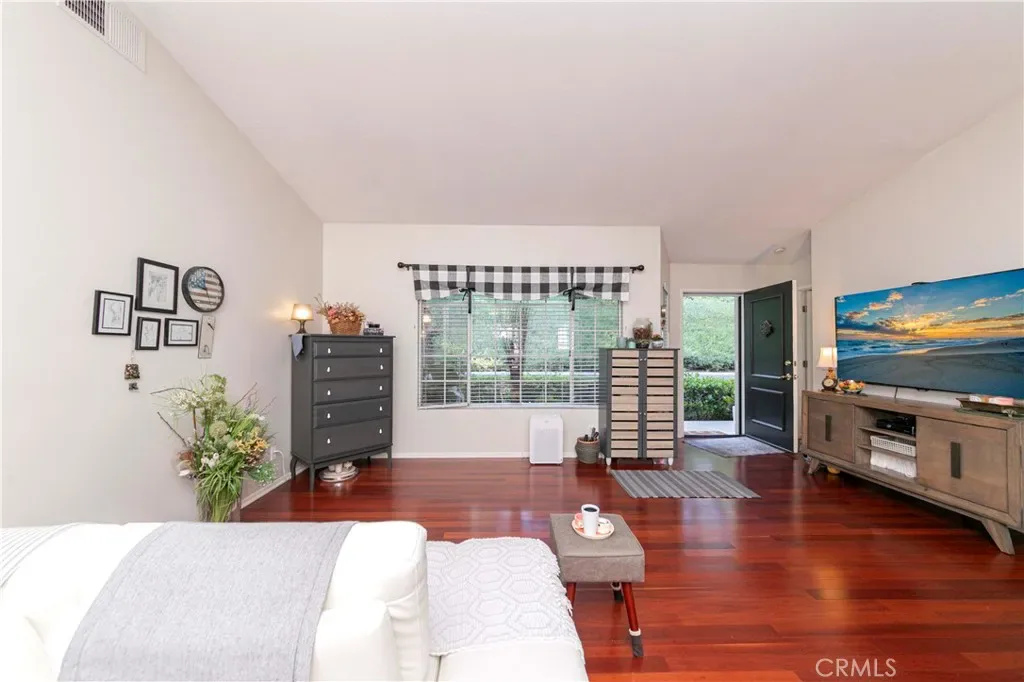 Rarely on the market! Beautiful 2 Bedroom, 2 Bathroom Condo in Gated Canyon Villas in Aliso Viejo. Very private location and entrance with green belt view. End unit with no one above or below. Open Floor plan with 2-bedroom, 2-bathroom home features dual en-suite bedrooms, offering ideal comfort and privacy. Newly Painted, Light and bright interior with Granite Countertops in kitchen. Whole house engineer wood throughout and the convenience of in-unit laundry and one car garage + 1 assigned parking spot. Unique private outdoor entertaining/front patio area. Canyon Villas has 2 resort-style pools, spas, fitness center, and clubhouse. Walking distance to Town Center and close to the 73. This is a fabulous property waiting for you to come enjoy!