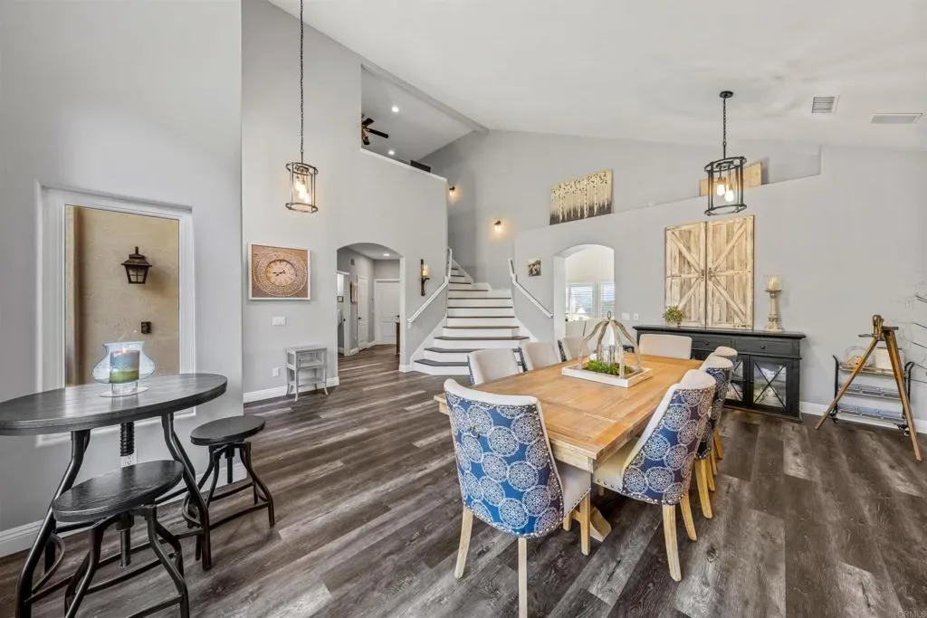 Welcome to this exceptional 4-bedroom, 3-bathroom modern farmhouse estate in Palo Verde Ranch, where over $500,000 in recent renovations meet breathtaking panoramic views and elevated country living. Blending classic charm with modern upgrades, this home offers the perfect balance of style, comfort, and functionality. Designed with a highly sought-after layout, the home features a primary suite on the first floor with its own fireplace, along with an additional full bedroom and bathroom downstairs—ideal for guests or multi-generational living. Upstairs, you’ll find a spacious office loft, two additional bedrooms, and a full bathroom, offering flexibility for today’s lifestyle. Inside, the home has been beautifully transformed with vinyl plank flooring, new carpet, fresh interior and exterior paint, and a fully remodeled kitchen featuring quartz countertops, a farmhouse sink, modern fixtures, and a brand-new backsplash. A standout feature is the custom walk-in pantry with its own sink and quartz countertops, combining both convenience and elevated design. All three bathrooms have been completely renovated, and the custom primary closet adds both elegance and functionality. A new fireplace and shutters throughout enhance the home’s warm, inviting aesthetic. Built for efficiency and peace of mind, the property includes 55 paid-off solar panels, a high-producing well (49 gallons per minute) with a 5,000-gallon holding tank, soft water system, and reverse osmosis drinking water. Fire-conscious upgrades such as fire-approved windows, fireproof rain gutters, and brush clearance provide added security. Step outside to your private retreat featuring gorgeous lush landscaping with mature trees, an avocado tree, a lemon tree, a lime tree, and beautiful flowers, along with a newly resurfaced Pebble Sheen pool with solar heating, propane, and wireless controls, an outdoor shower, and enhanced lighting. The property also offers RV parking with full hookups and dumping station, two fully powered sheds, and a garage solar hookup—perfect for both convenience and recreation. Located in the highly desirable Palo Verde Ranch community, this home offers space, privacy, and access to one of Alpine’s most sought-after neighborhoods.