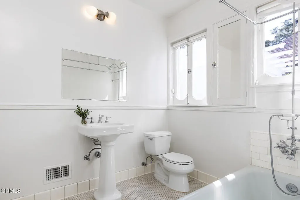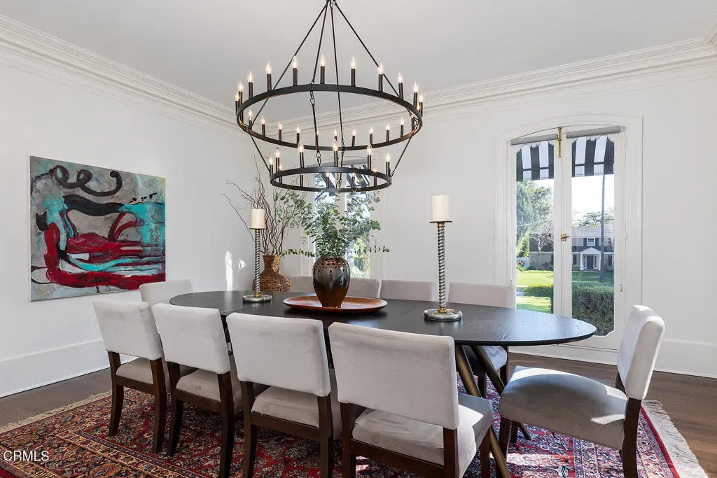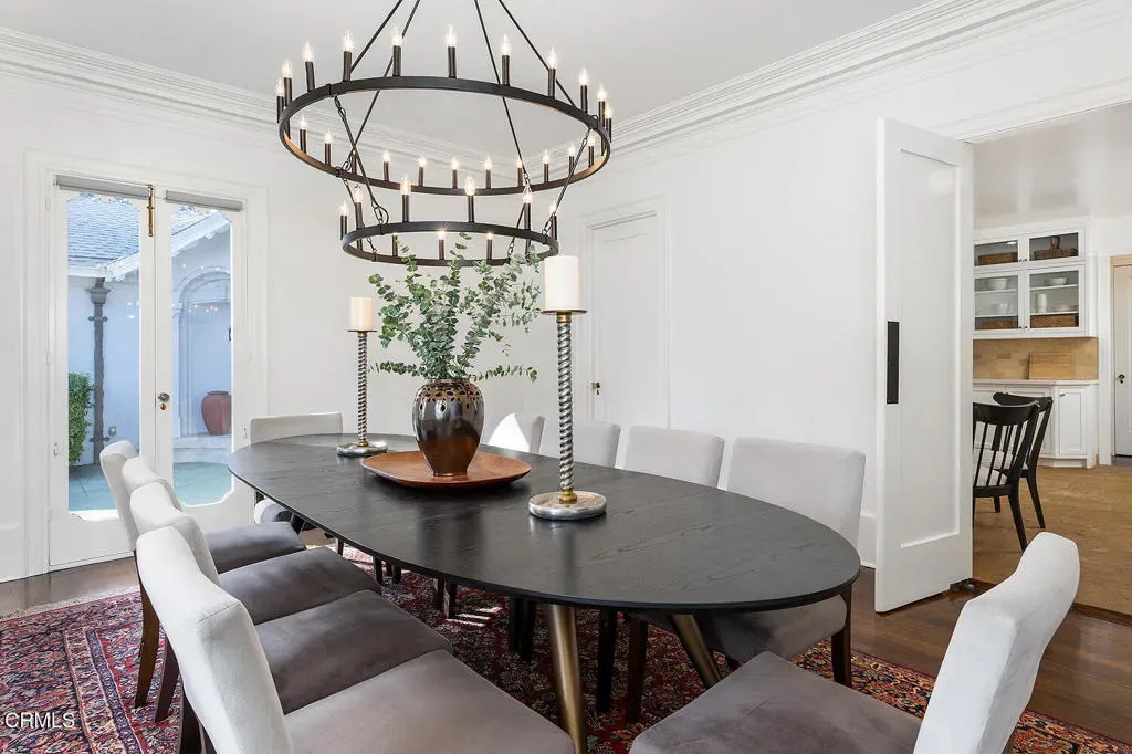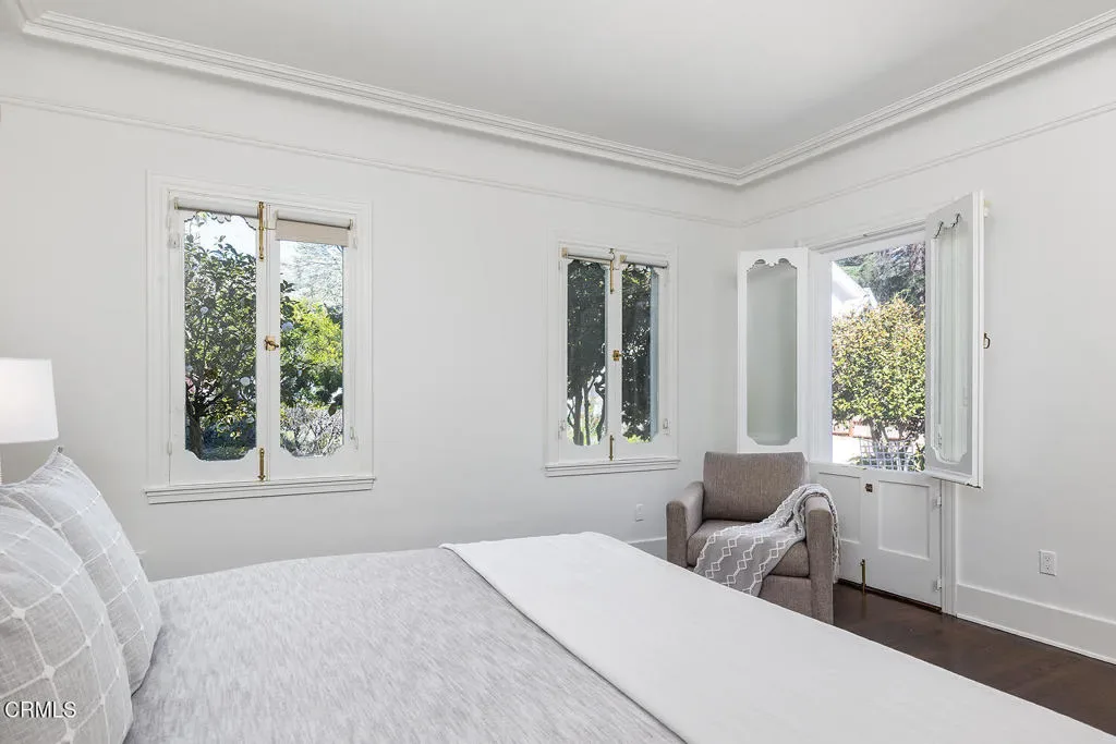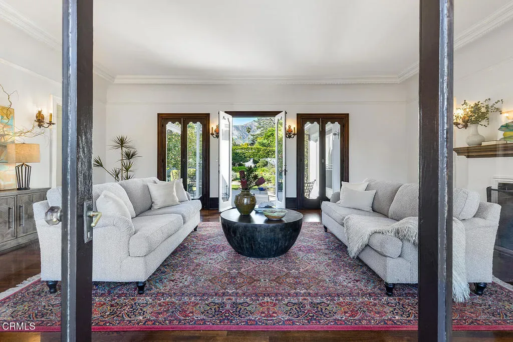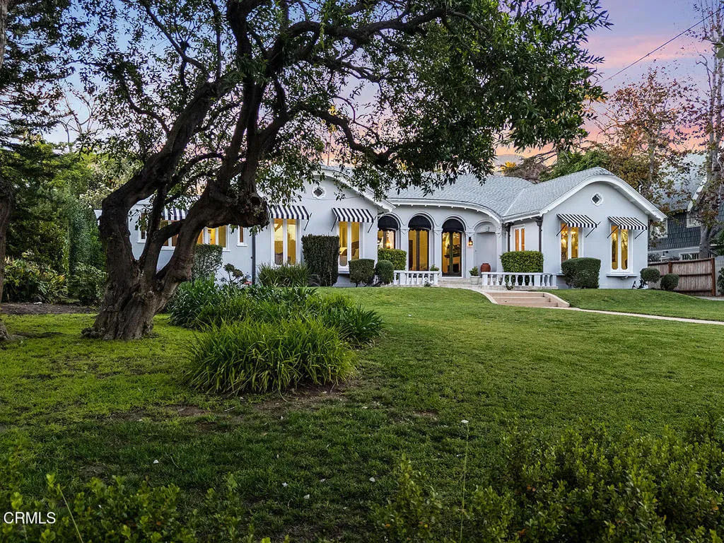 This 1921 Italian Renaissance Revival Villa epitomizes historic Altadena. Built by designer Pasquale de Rosa, friend of the legendary Zane Grey, this exquisite compound on over half an acre is a work of art. Sited to enjoy spectacular mountain views, the property includes a main residence, guest quarters, barn studio, and beautiful gardens. There is beauty to be found everywhere here, in the natural surroundings to the classical symmetry and curves. Featuring an H-shaped plan, the home’s distinctive roofline is defined by its rounded gables, sculptural carved rafter tails, and starburst oculi at the east and west of the facade. Three french doors at the entry elevation boast views through the central living room, and open to a harmonious floor plan. Connecting public and private spaces, while enjoying access to patios and gardens to the north and south, the room is anchored by a decorative fireplace, rich carved mahogany woodwork, and original candelabra sconces. An elegant formal dining room features coved ceilings and french doors, flowing naturally into an updated eat-in kitchen, while a quiet sitting room with its own decorative fireplace enjoys views and direct outdoor access. Throughout the property, details are exquisite: custom plaster moulding, elaborate trim and baseboards, and carved wood frames on casement windows and doors speak to the vision and craft of the original builder. The 2,875 SF main house offers four bedrooms, including two generous primary bedrooms, one with a full ensuite bath, the other with french doors opening to the backyard gardens. The gardens are magical, with a grassy lawn framed by sculptural conifers, fruit trees, a cactus garden, roses, gardenias, and fragrant herbs, with the majestic San Gabriels in the background. A large filtered koi pond and a separate decorative pond peacefully ground the space. The separate 632 SF back house with guest studio upstairs has handsome tongue and groove wood paneling, with a three-quarter bath, laundry and a garage with storage on the ground floor. Lastly, the onetime barn, now a studio, opens a world of possibilities as a home gym, gardener’s studio, or future office. 1275 New York Drive is a once-in-a-lifetime opportunity to own a landmark property of genuine architectural significance in one of the Foothills’ most cherished neighborhoods. Minutes from restaurants, coffee shops, retail and the cultural attractions of Altadena and downtown Pasadena, this transporting home is a