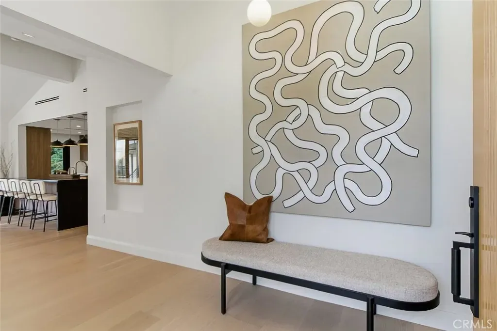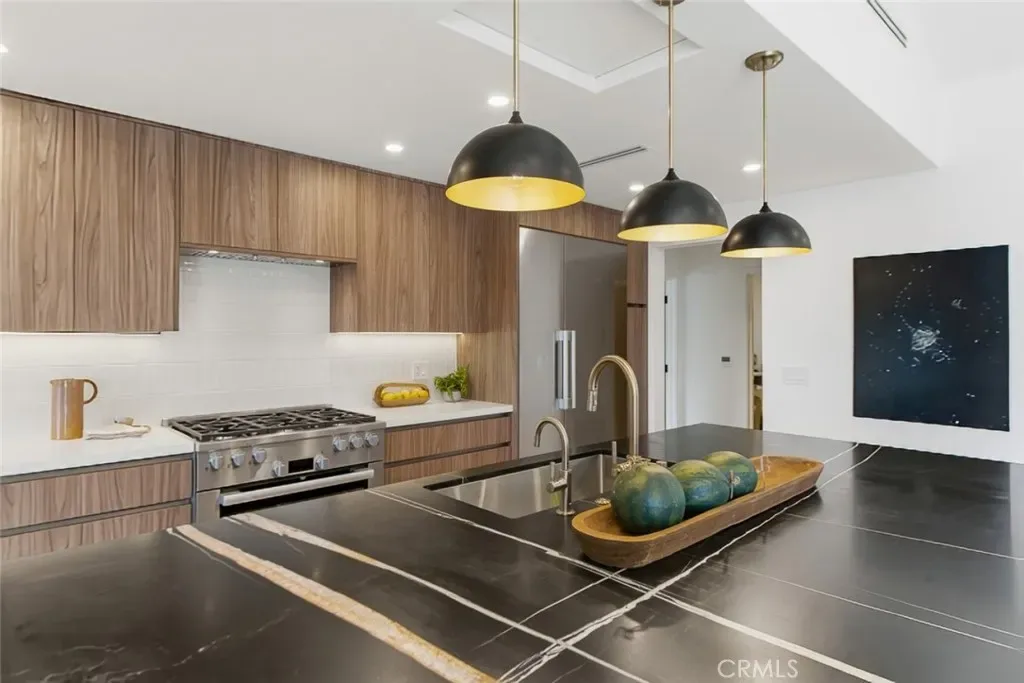 The expansive open floor plan features bright living areas, recessed lighting, and seamless indoor outdoor flow ideal for both everyday living and entertaining. The chef inspired kitchen is a true centerpiece, highlighted by an oversized island, premium Miele appliances, abundant cabinetry, and a dedicated pantry for added storage and convenience. A separate laundry room enhances everyday functionality.