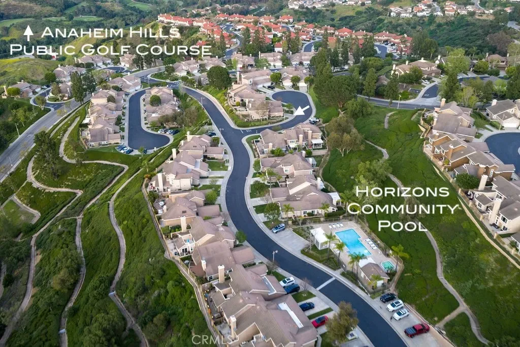 Gorgeous View-Home, Beautifully Upgraded Throughout, Well Situated within Horizons – a safe and peaceful community, high in the hills of Anaheim. Light & Bright – Numerous windows provide abundant natural light and spectacular city-light and mountain views from the living and dining rooms, primary bedroom and backyard. High ceilings for that large open feel. One bedroom and full bath w/ walk-in shower downstairs. Two ensuite bedrooms with walk-in closets upstairs. Beautifully redesigned kitchen (now) opens to the Dining room with the Living room and dining area opening to each other with nice flow to the spacious backyard. The backyard is peaceful with gorgeous views, ready for outdoor relaxing, entertaining and making memories. Two-car garage with abundant storage. Full driveway. Cul-de-sac. Move-in ready. Horizons is a beautifully maintained community surrounded by views, hiking trails and nature. Community pool & guest parking. HOA covers insurance on structure, roofs, exteriors and front-yard landscaping. Highly rated schools. Walking-close to golf, hiking, parks, nature center, saddle club. Close-by shopping, restaurants and entertainment. This area of Anaheim Hills has gorgeous views, lush hillsides, a constant breeze, and a rural-feeling of being far away from it all while still being close to so much. A truly wonderful place to live.
