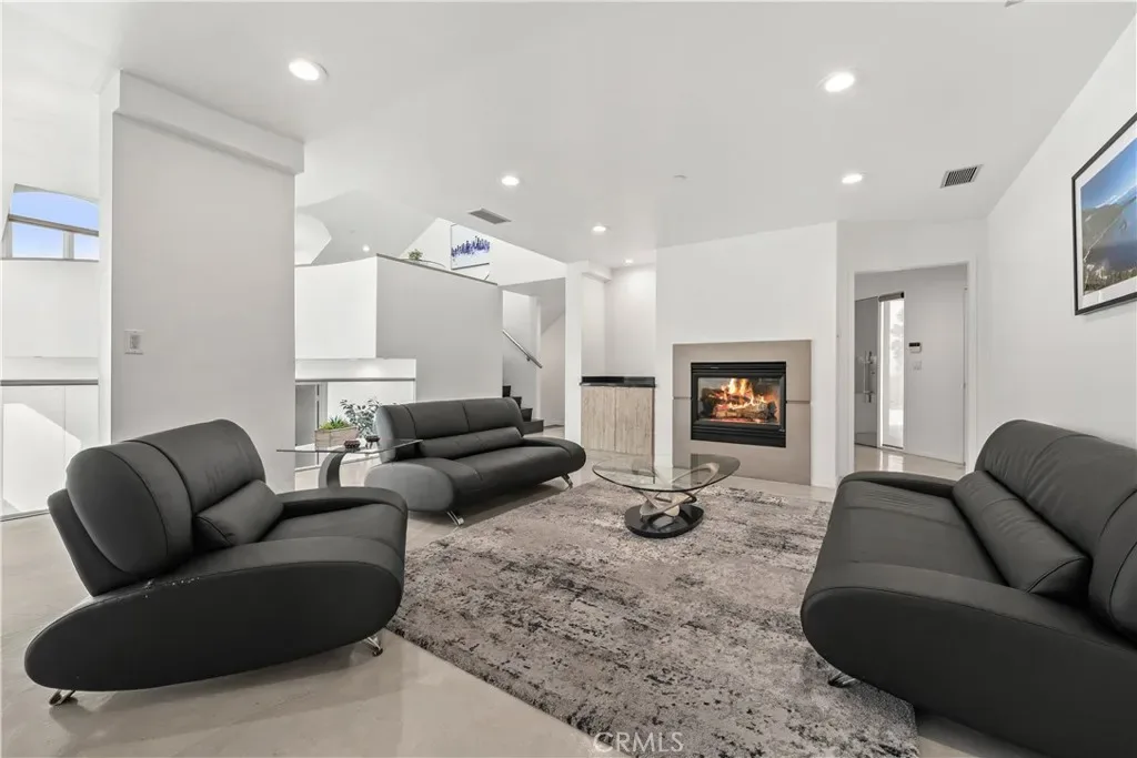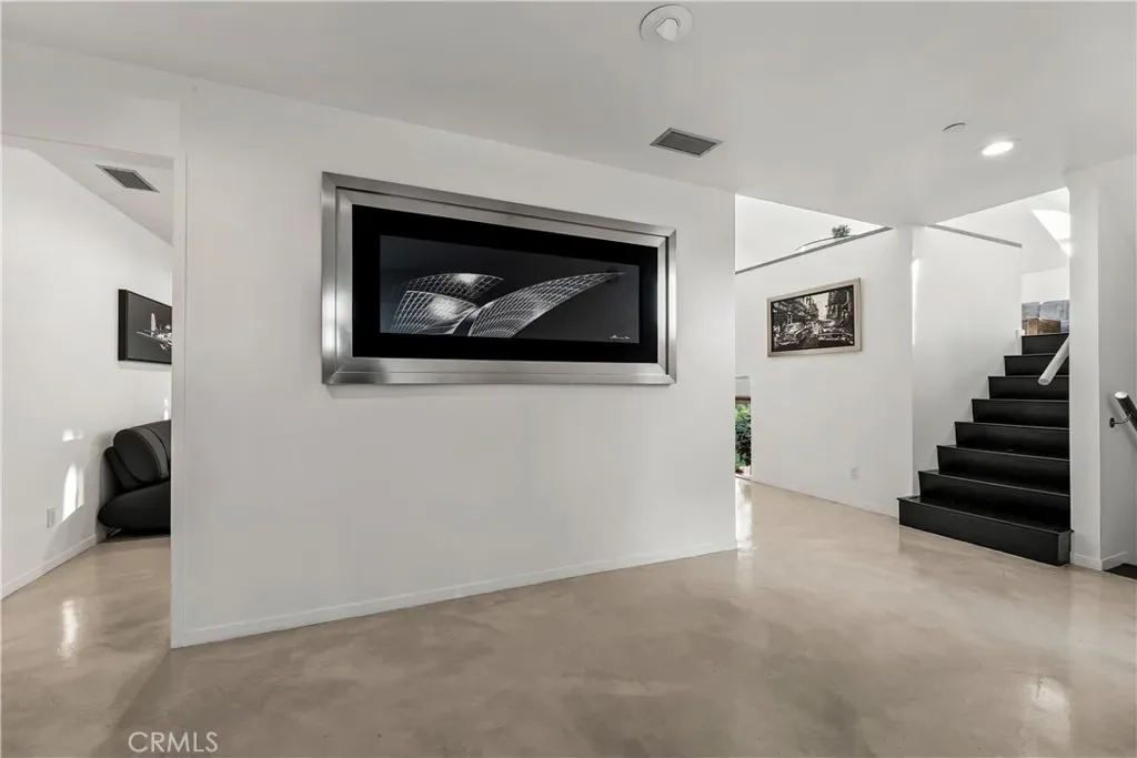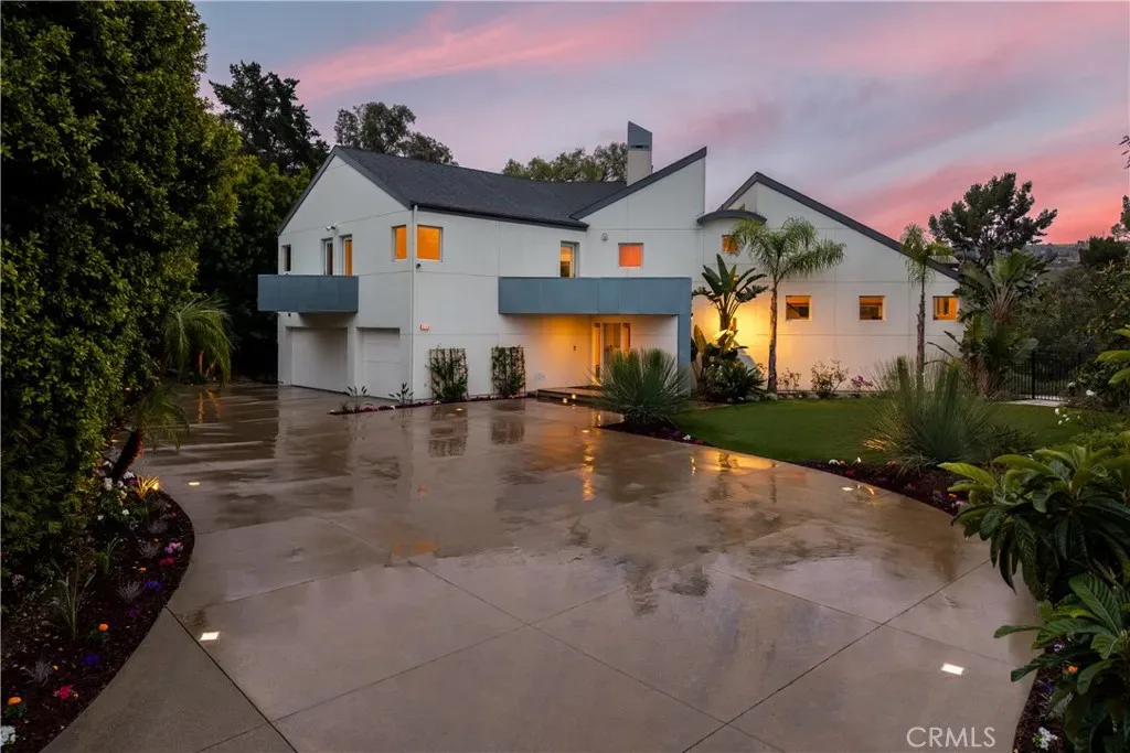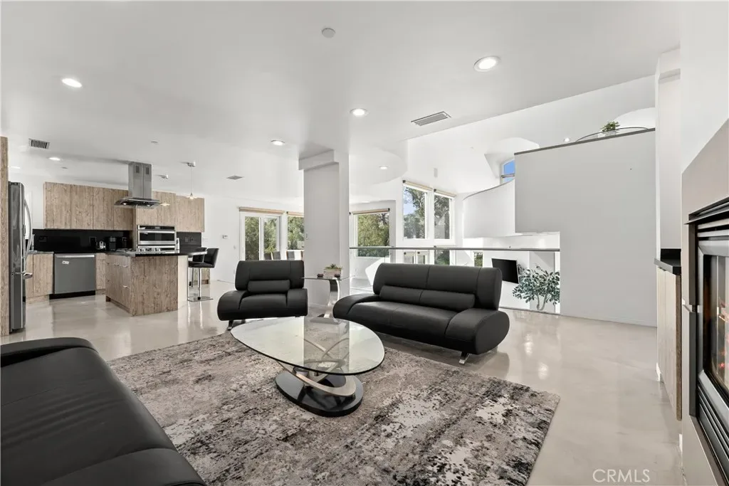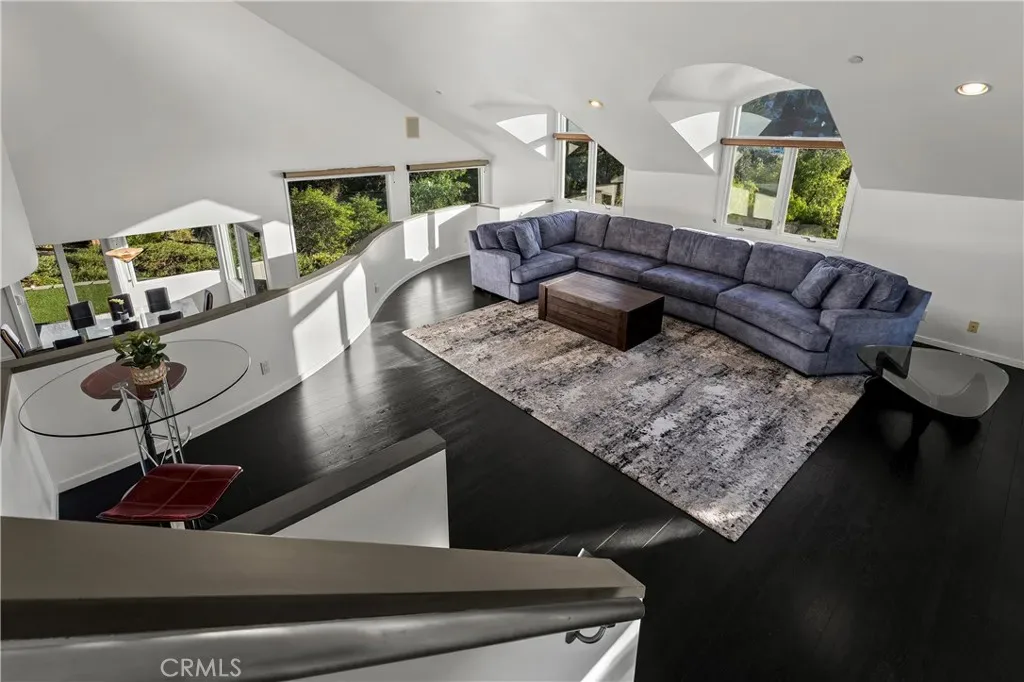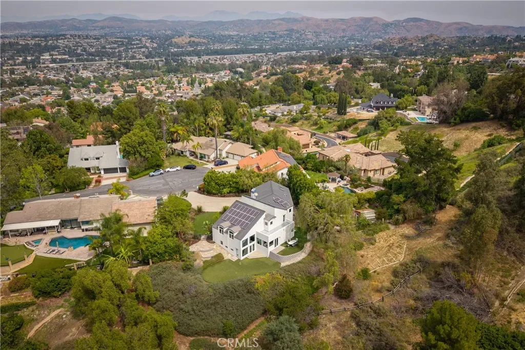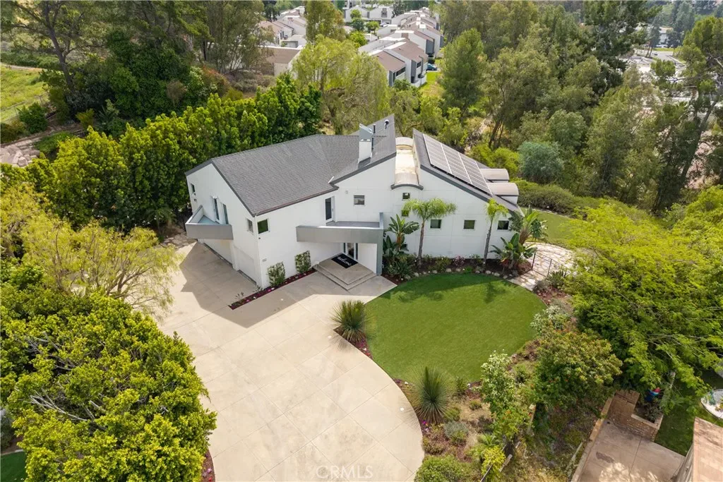 A rare and unforgettable architectural statement in the heart of Anaheim Hills, this privately set contemporary residence is a masterclass in design, light, and spatial experience. Positioned on an expansive 22,113 sq foot cul de sac lot, the home offers approximately 4,308 square feet of refined living where form and function exist in perfect harmony. Conceived and built by a renowned architect, the residence was designed to challenge convention and elevate everyday living. Sculptural curves, soaring ceilings, and dramatic sculptural walls invite an ever-changing play of natural light while framing captivating hillside and city light views. Every line, every material, and every volume was intentionally crafted to create a sense of openness, movement, and connection. At the heart of the home lies a striking multi-level composition anchored by a signature loft space that floats above the main living areas. This architectural centerpiece creates a rare living experience, offering both visual connection and spatial separation across the living room, dining area, kitchen, and entertainment spaces. It is a home designed to be experienced. The kitchen is both a focal point and gathering place, where form meets function through clean lines, stainless steel appliances, generous storage, and a distinctive curved breakfast bar that mirrors the home’s fluid design. Natural materials enrich the interiors, including polished concrete floors, stainless steel detailing, smooth stucco finishes, and a serene primary suite bath finished in travertine with a soaking tub, glass enclosed shower, and dual vanities. Integrated systems enhance both comfort and efficiency, including solar power, energy efficient Low E windows, zoned dual HVAC, tankless water heater, water softener, and a fully fire sprinklered design. Clerestory windows and passive ventilation strategies further elevate the home’s environmental performance while maintaining a refined aesthetic. The flexible floor plan offers four bedrooms, a guest room or office, three bathrooms, an entertainment room, storage room, and multiple interconnected living spaces designed for both intimate moments and grand gatherings. Complete with available floor plans and geotechnical report, this residence offers not only architectural significance, but confidence and clarity in its design and construction. This is more than a home. It is a living work of art, a place where design inspires, light moves, and life unfolds beautifully.
