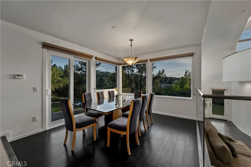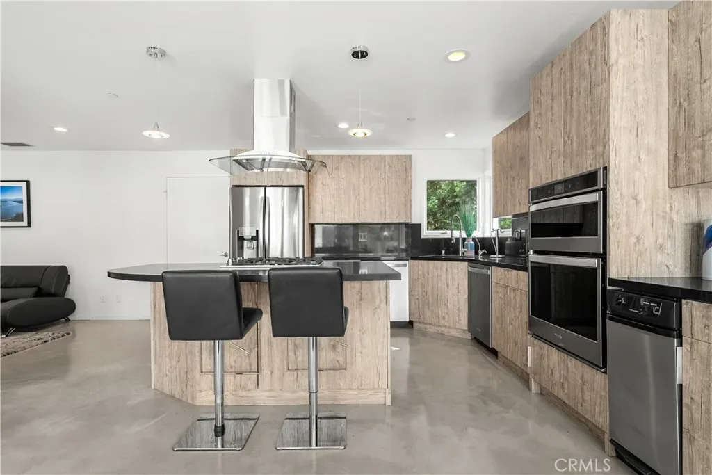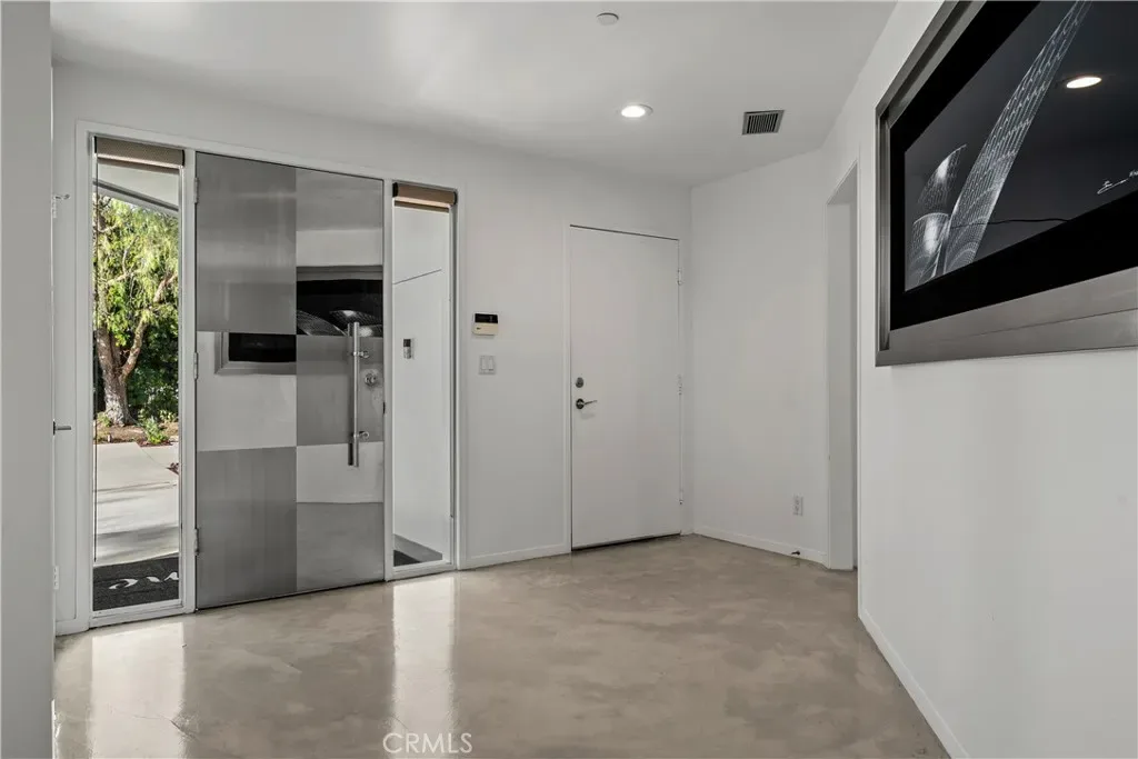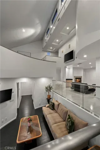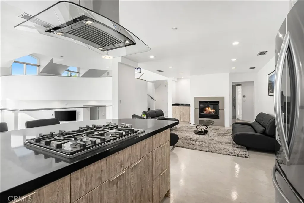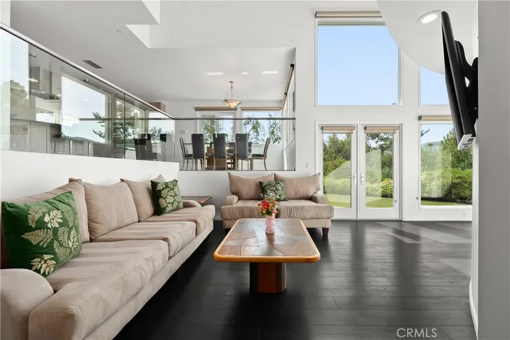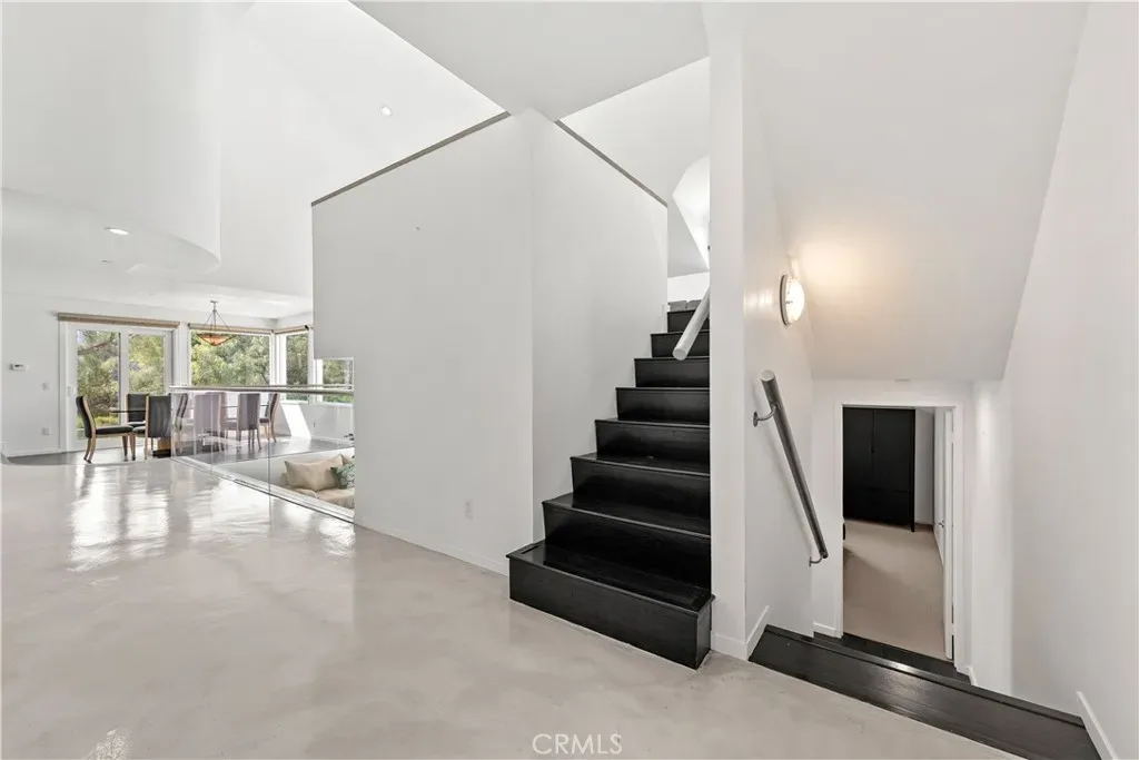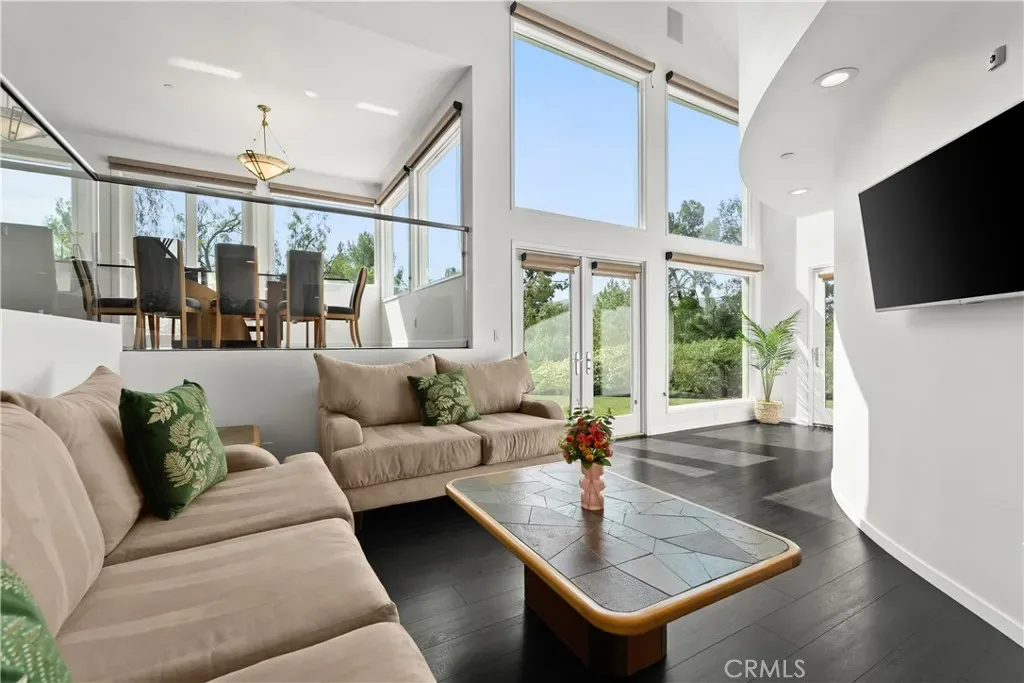 A rare and unforgettable architectural statement in the heart of Anaheim Hills, this privately set contemporary residence is a masterclass in design, light, and spatial experience. Positioned on an expansive 22,113 sq foot cul de sac lot, the home offers approximately 4,308 square feet of refined living where form and function exist in perfect harmony. Conceived and built by a renowned architect, the residence was designed to challenge convention and elevate everyday living. Sculptural curves, soaring ceilings, and dramatic sculptural walls invite an ever-changing play of natural light while framing captivating hillside and city light views. Every line, every material, and every volume was intentionally crafted to create a sense of openness, movement, and connection. At the heart of the home lies a striking multi-level composition anchored by a signature loft space that floats above the main living areas. This architectural centerpiece creates a rare living experience, offering both visual connection and spatial separation across the living room, dining area, kitchen, and entertainment spaces. It is a home designed to be experienced. The kitchen is both a focal point and gathering place, where form meets function through clean lines, stainless steel appliances, generous storage, and a distinctive curved breakfast bar that mirrors the home’s fluid design. Natural materials enrich the interiors, including polished concrete floors, stainless steel detailing, smooth stucco finishes, and a serene primary suite bath finished in travertine with a soaking tub, glass enclosed shower, and dual vanities. Integrated systems enhance both comfort and efficiency, including solar power, energy efficient Low E windows, zoned dual HVAC, tankless water heater, water softener, and a fully fire sprinklered design. Clerestory windows and passive ventilation strategies further elevate the home’s environmental performance while maintaining a refined aesthetic. The flexible floor plan offers four bedrooms, a guest room or office, three bathrooms, an entertainment room, storage room, and multiple interconnected living spaces designed for both intimate moments and grand gatherings. Complete with available floor plans and geotechnical report, this residence offers not only architectural significance, but confidence and clarity in its design and construction. This is more than a home. It is a living work of art, a place where design inspires, light moves, and life unfolds beautifully.