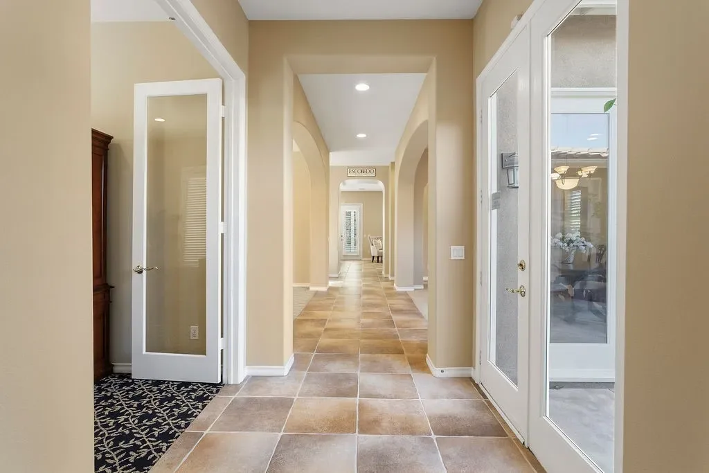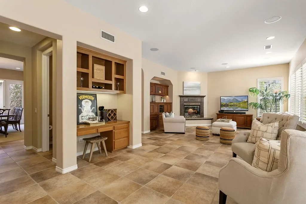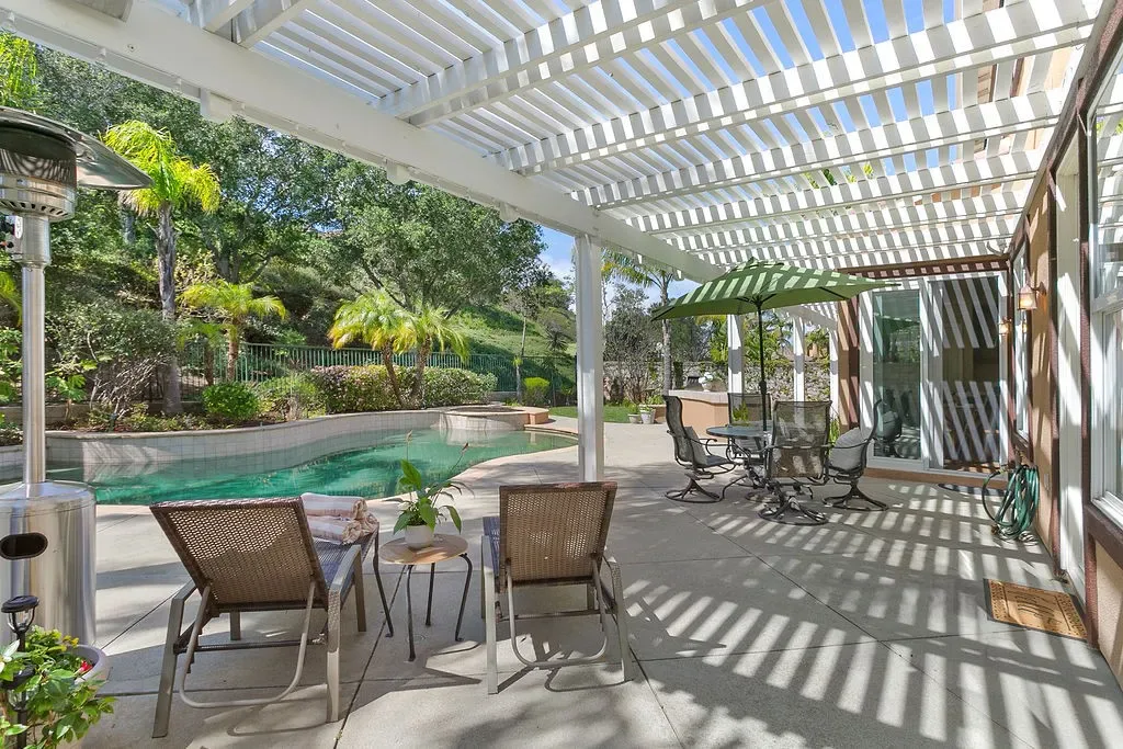 Behind the 24-hour guard gates of Summit Pointe, this distinguished Shea-built estate offers nearly 5,000 square feet of thoughtfully designed living space with soaring ceilings, charming outdoor courtyards, and a flexible floor plan suited for every season of life. A welcoming front entry courtyard sets a gracious tone and leads to an elegant foyer and private office with its own exterior entry. A flex space adjacent to the one car garage, benefits from its own side courtyard entrance, creating an exceptional opportunity for a home business, studio, or client-facing workspace with private guest access. Elegant formal living and dining rooms provide refined entertaining spaces, with the dining room opening to a peaceful outdoor sitting area and the living room centered around a warm fireplace. Toward the rear of the home overlooking the backyard entertaining oasis, the spacious family room with built-in cabinetry and fireplace flows into the casual dining area and kitchen featuring an island with seating and a built-in desk or beverage station. The backyard is designed for relaxed outdoor living with a pool, spa, and built-in BBQ set against a peaceful tree-lined hillside maintained by the HOA, creating a private and serene setting for entertaining or quiet evenings at home. A main-floor ensuite bedroom provides an ideal space for guests or multigenerational living with its own backyard patio. Upstairs, a loft with built-in desks creates a natural study or workspace hub. A dramatic front bedroom with turret architecture and ensuite bath adds architectural character, while two additional secondary bedrooms each feature their own private bathrooms. The expansive primary suite offers a true retreat with a separate sitting area and built-ins, a dual-sided fireplace shared with the bedroom, two separate walk-in closets, and a spa-inspired bath with soaking tub and oversized walk-in shower overlooking the tranquil backyard. Additional highlights include an attached two-car garage with overhead storage and a separate single-bay garage with front-facing windows offering flexibility for additional parking, storage, or workshop space. Energy-efficient plantation shutters, Milgard windows, and a newer tankless water heater enhance the home’s comfort and efficiency. Residents enjoy the privacy of a guard-gated community, access to nearby hiking trails, and proximity to award-winning schools, creating a lifestyle that melds natural beauty, comfort, and prestige.