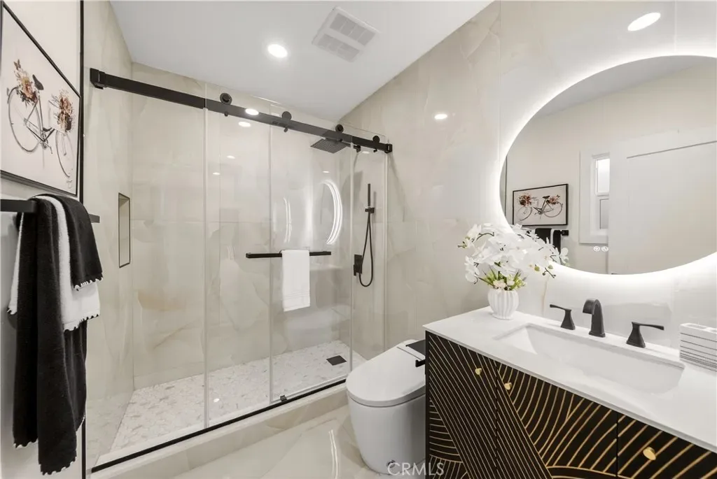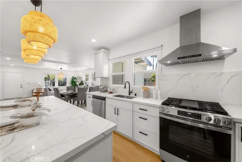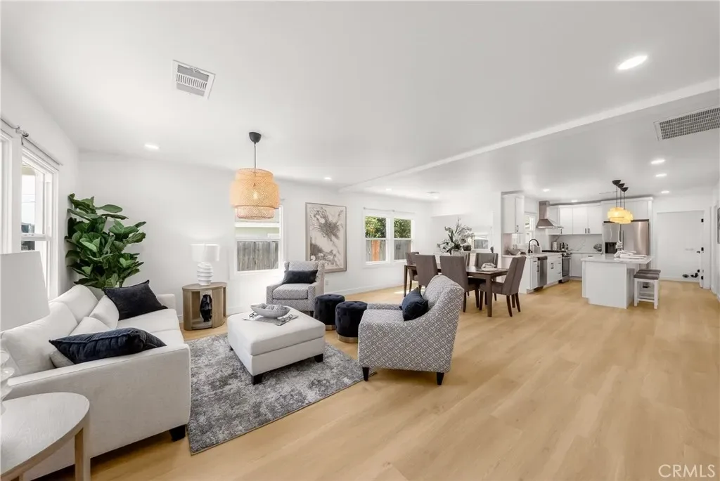 Welcome to this exquisitely remodeled Anaheim residence, offering 3 spacious bedrooms and 3 beautifully appointed bathrooms. Thoughtfully redesigned from top to bottom, the home showcases a seamless open-concept floor plan that creates an inviting, light-filled atmosphere perfect for both refined entertaining and everyday living.