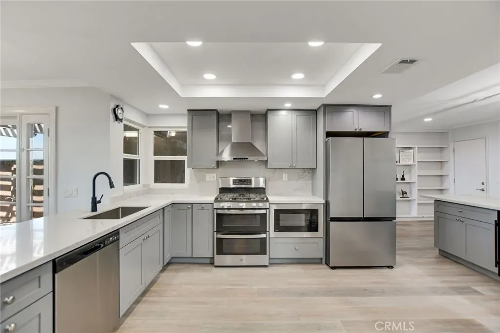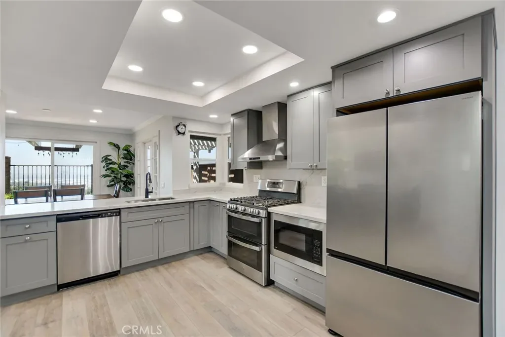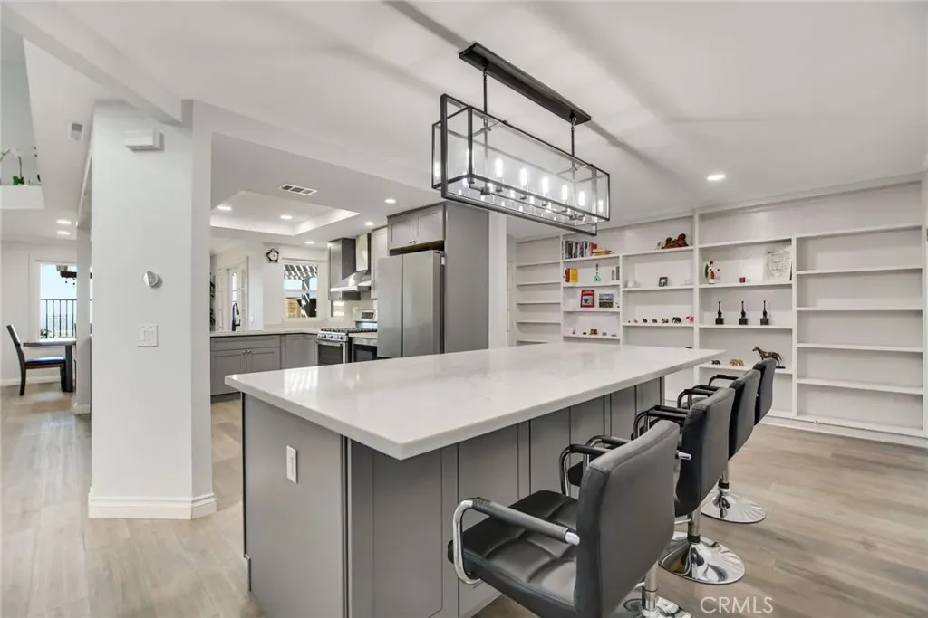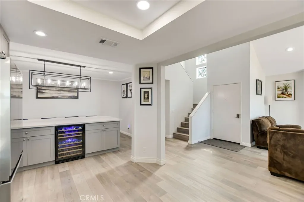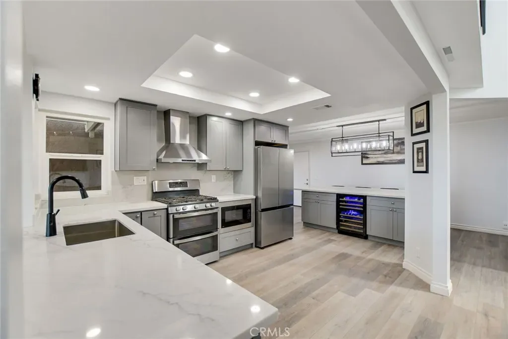 The heart of the home is the stunning, newly remodeled kitchen, complete with a large party island designed for entertaining, sleek new appliances, and a built-in wine cooler—perfect for hosting gatherings in style.