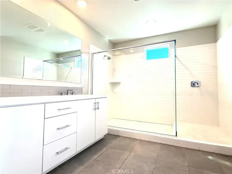 Upstairs, the spacious primary suite offers a well-appointed en suite bathroom with dual vanities, a walk-in shower, and a generous walk-in closet. A third bedroom completes the upper level, providing comfortable living for families or roommates.