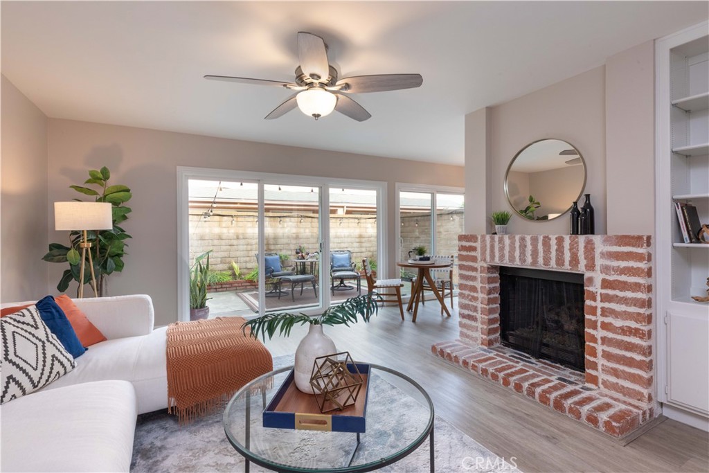 Wonderful opportunity to own this freshly painted, 3 bedroom, 2.5 bath townhome located in the highly desirable Northwoods Village community! This beautiful townhome offers a spacious living room with a wall of newer sliding glass doors which open to your private patio. The living room also features a brick fireplace and built in bookshelves which creates a lovely ambiance. (the gas has been capped off and the logs remain) The galley kitchen has plenty of storage with room for a cafe table at the end that overlooks the patio, with its own set of sliding glass doors. The other end flows into your dining room. 1459 square feet of living space is quite roomy and includes it’s own laundry room with your side by side washer & dryer. Newer HVAC , upgraded windows, water heater, and more! Upstairs you will find an oversized primary bedroom with an open concept for a walk-in closet sporting it’s own chadelier, and of course, your own bath room with an updated vanity. The additional 2 bedrooms have closet inserts allowing opportunity to stay organized! A full bath is also upstairs with a 1/2 bath on the first floor. The 2 car garage is not only private and attached to your home, it has direct access to your home! The complex has a pool, spa and club house. Conveniently located near the 91 and 5 freeways, churches, schools, shopping and public transportation. This is a fantastic place to call home! Don’t miss out!