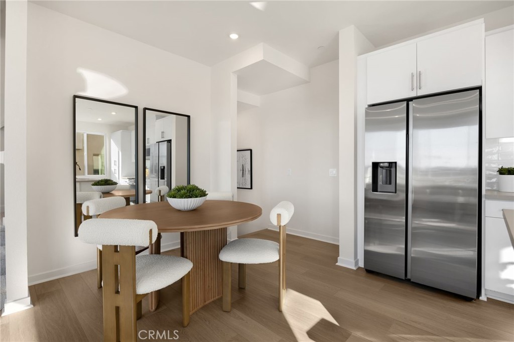 Welcome to this brand-new, three-story townhome located in an intimate enclave of just 44 homes in the heart of Anaheim—designed for modern professionals who value smart layouts, low maintenance living, and unbeatable convenience. This 2-bedroom, 2.5-bath residence with a 2-car attached garage offers a thoughtfully planned floorplan that maximizes both function and natural light. The first level features direct garage access, while the main living level opens to a bright, open-concept kitchen, living, and dining space—perfect for both everyday living and entertaining. The kitchen is anchored by a large center island, ample cabinetry for storage, and flows seamlessly to a private balcony, creating an ideal indoor-outdoor workspace or relaxation zone. Upstairs, you’ll find two generously sized bedrooms, each with its own bathroom—ideal for roommates, guests, or a dedicated home office setup. High ceilings, abundant windows, and a smart, efficient layout make the home feel both airy and purposeful.